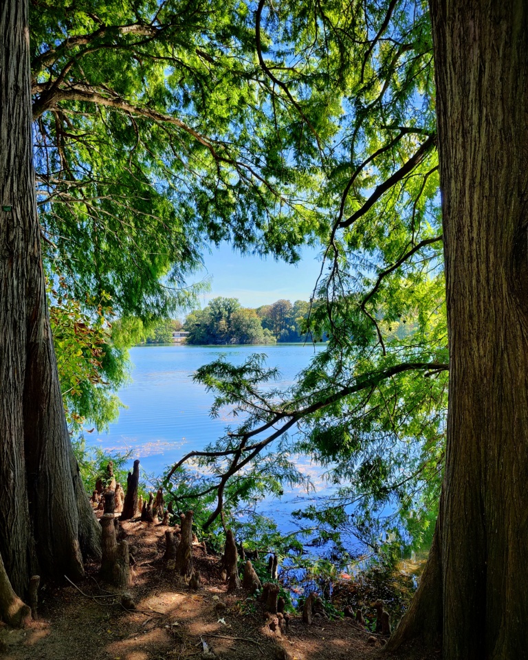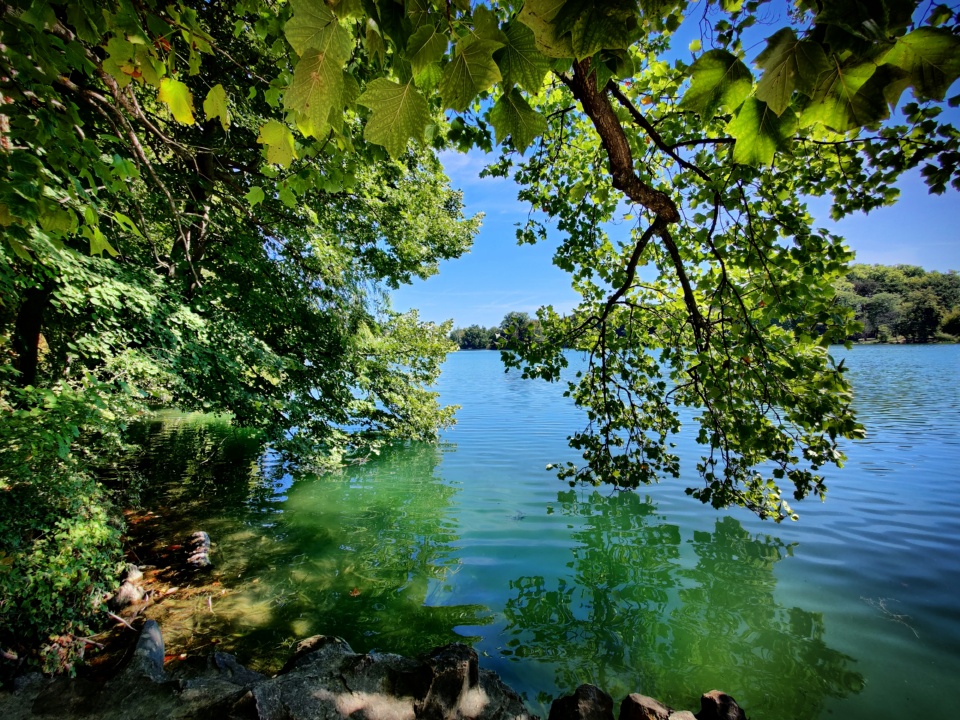 Mais c’était agréable justement par ce cagnard d’avoir une étendue d’eau et l’ombre de ces grands arbres.
