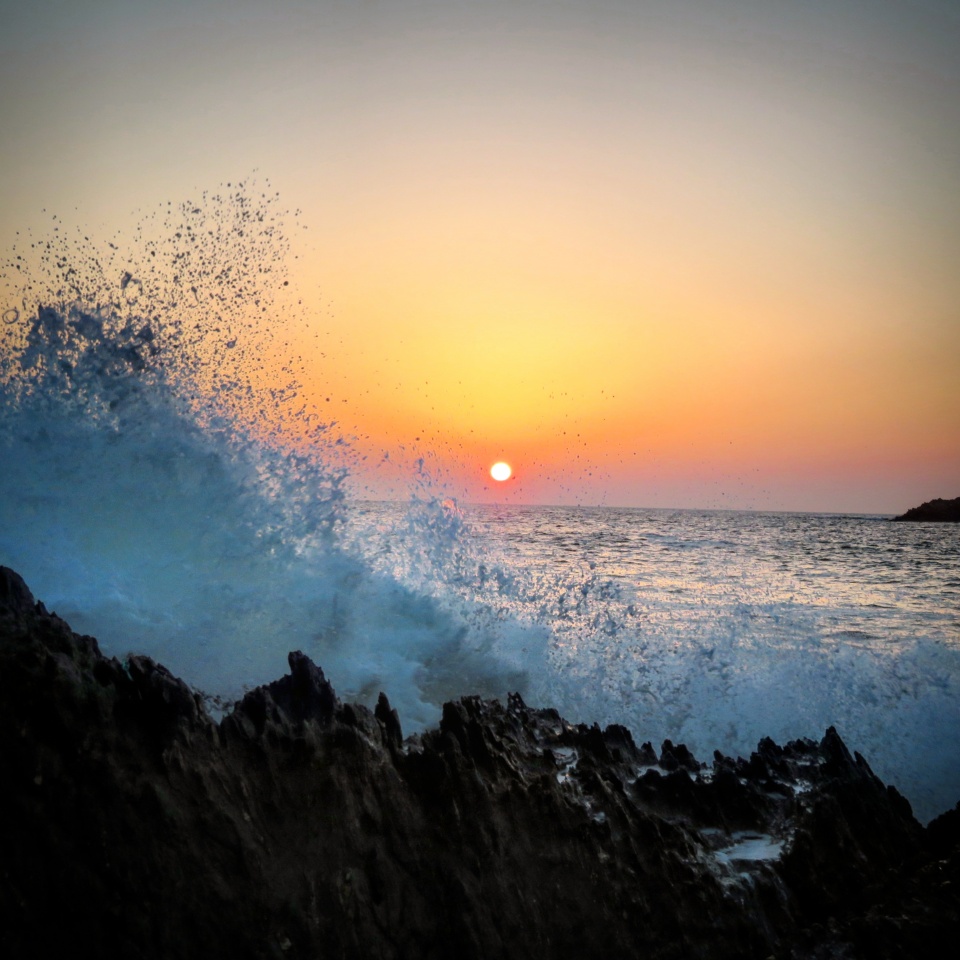 En cette saison, le soleil ne se couche pas encore dans les terres, et on arrive facilement à trouver des endroits sur la côte où il se couche dans l’océan, et idéalement près des vagues. Je suis allé bien au bord pour saisir quelques moments sympas, et j’ai fini par être bien arrosé mais je l’avais bien cherché. Et aucun regret, c’était tellement beau et je suis content d’avoir un peu capturé le moment.