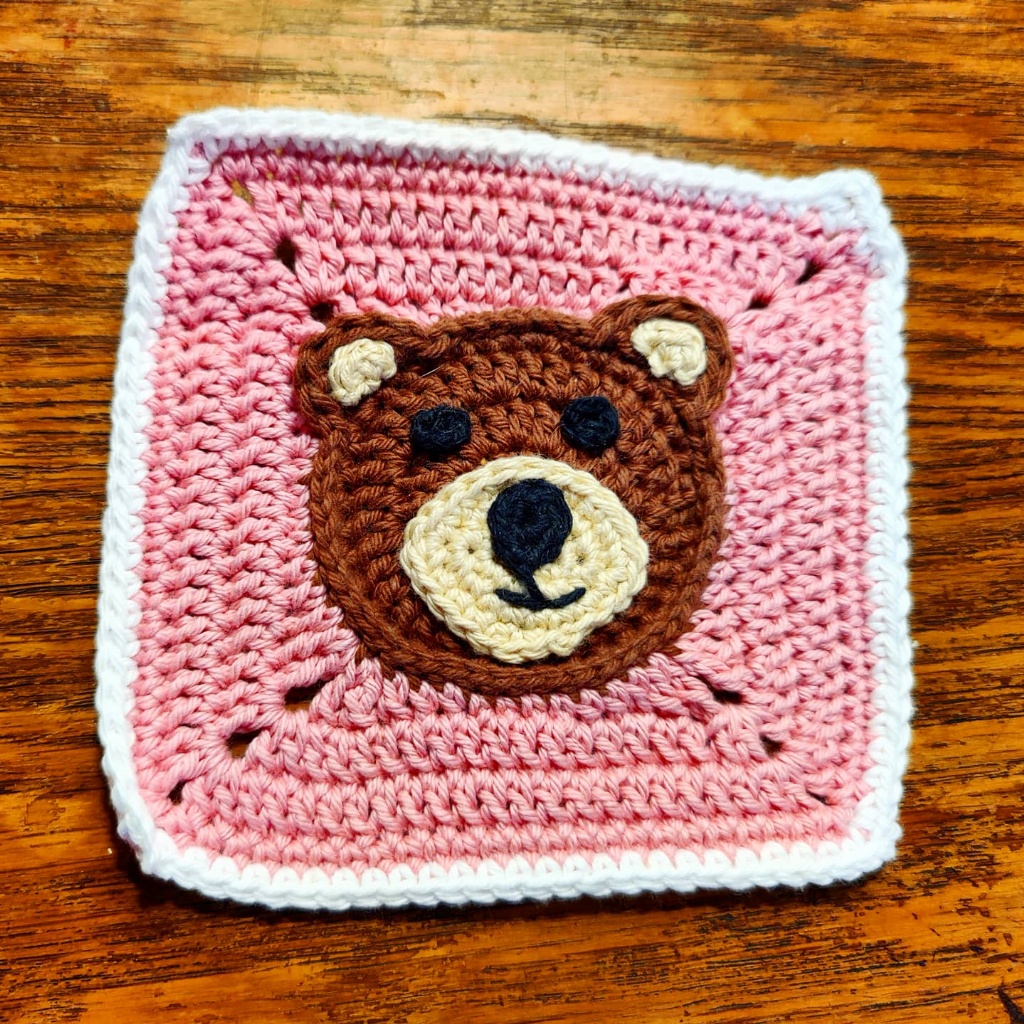 Apparemment on n’a pas été tant que cela à avoir scrupuleusement suivi le défi, et donc j’ai gagné un super carré crocheté à la main par Dr. CaSo herself !! Evidemment quand elle m’a demandé de choisir, c’est celui qui m’a tapé dans l’oeil. Un ourson tout mignon et sur fond rose, nan mais qui à qui d’autre cette œuvre d’art pouvait-elle revenir ?