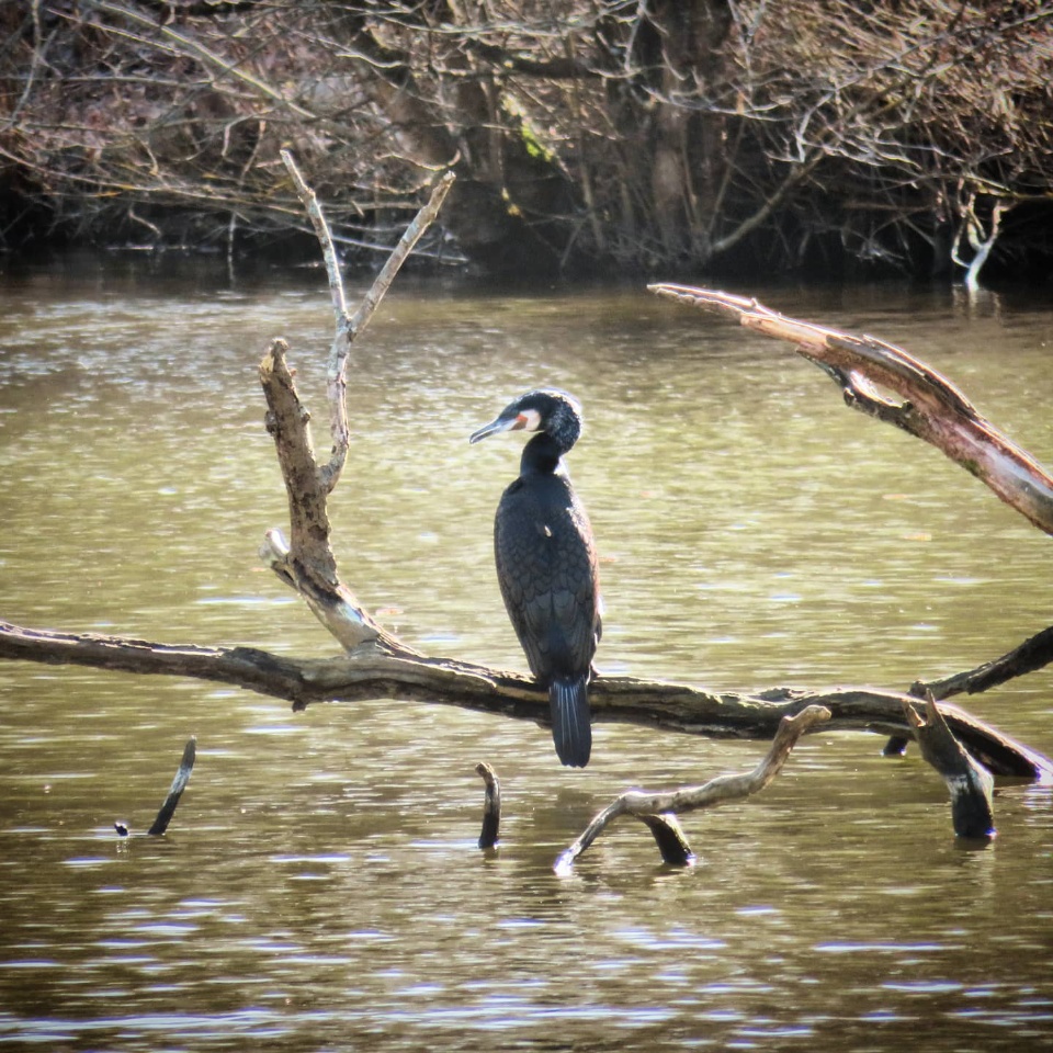 Il y a bien sûr des canards sur cet étang, mais aussi des oies et surtout des cormorans. Et vous ne le savez peut-être pas mais j’adore les cormorans. Déjà parce que ça vient du vieux français qui veut dire « corbeau de mer », et que j’aime beaucoup les corvidés aussi. Mais surtout le fait qu’ils soient des pêcheurs super doués, et de fascinants plongeurs qui foncent à cent à l’heure dans la flotte pour choper la poiscaille. Et encore plus, quand ils sortent de l’eau, et qu’ils ressemblent à des espèces de chauve-souris avec leurs ailes étendues au vent pour les sécher. Car, contrairement à la plupart des oiseaux marins, leur plumage est parfaitement perméable ce qui leur confère cette vélocité et forme aérodynamique pour si bien plonger.