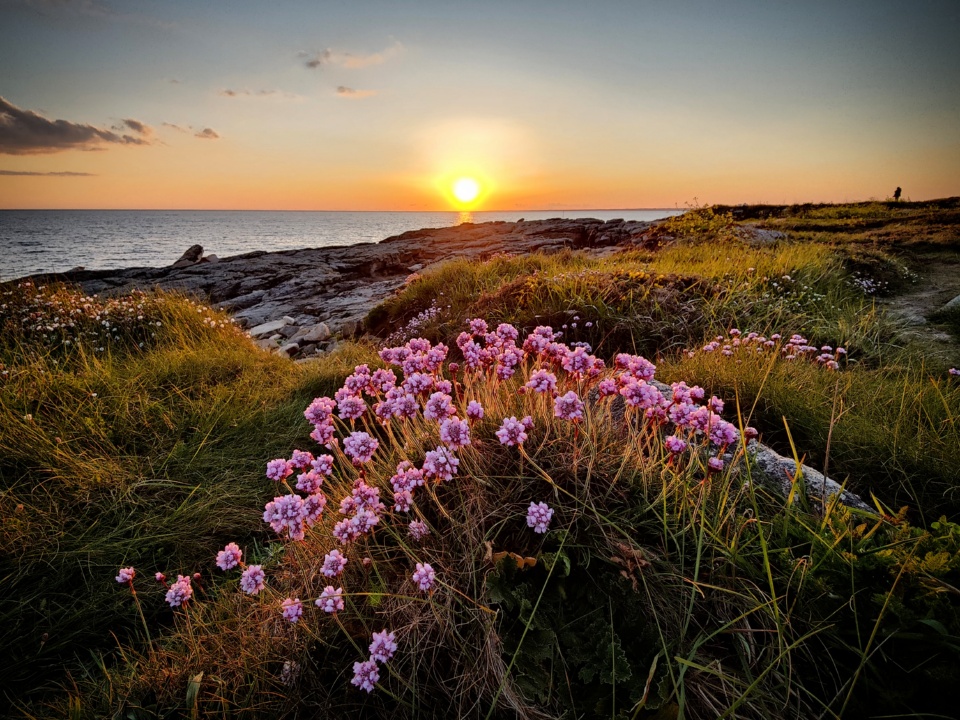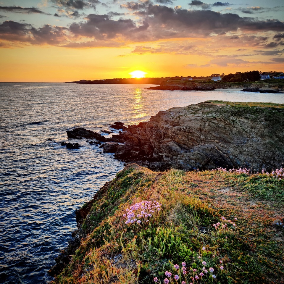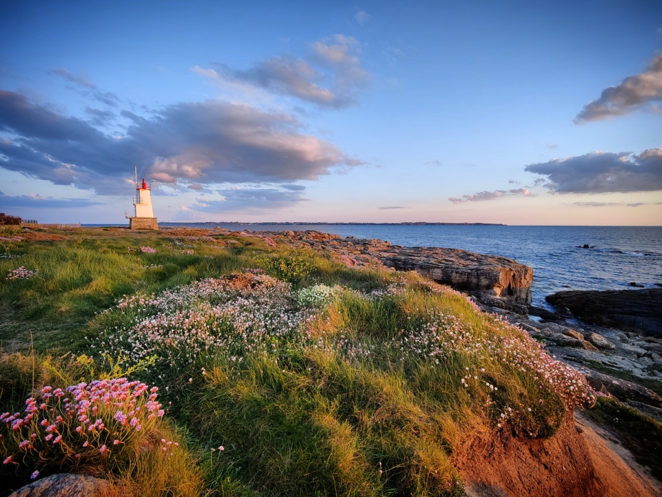 J’aime beaucoup le panorama opposé au soleil avec un petit phare tout mignon et la vue sur Groix, et là avec une ribambelle de fleurs sauvages.