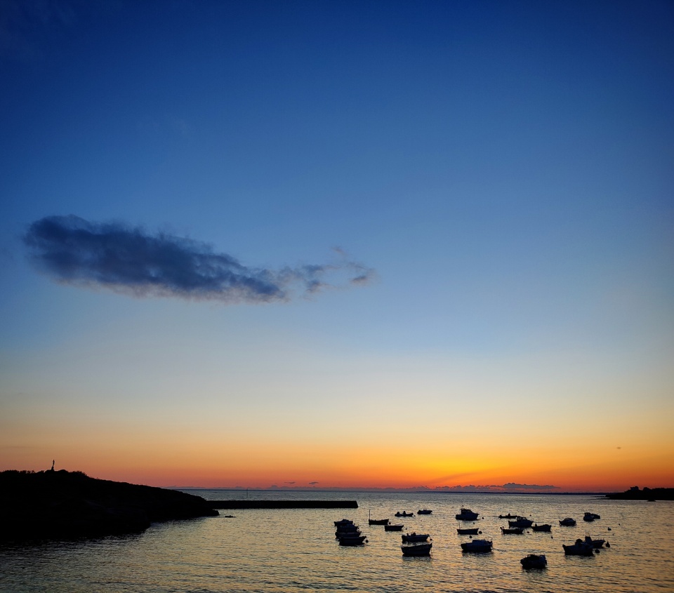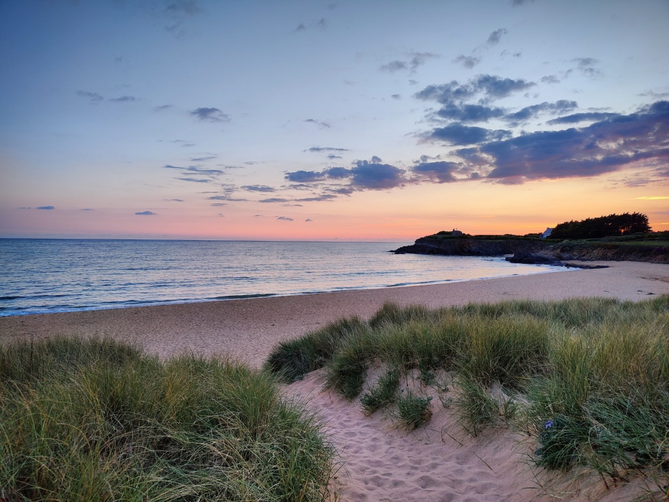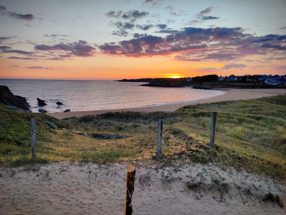Mais oui pourquoi choisir quand on peut faire les deux ? On est juste à la limite entre les deux départements, et les couchers de soleil ont leurs attraits des deux côtés de la Laïta. Cela faisait longtemps qu’on était pas allé jusque Kerroc’h (qui fait partie de la ville de Ploemeur), et j’aime particulièrement cette pointe qui est juste en face de l’île de Groix. Cette dernière apparaît d’ailleurs parfaitement détaillée, et on a l’impression qu’on pourraît s’y rendre à la nage.