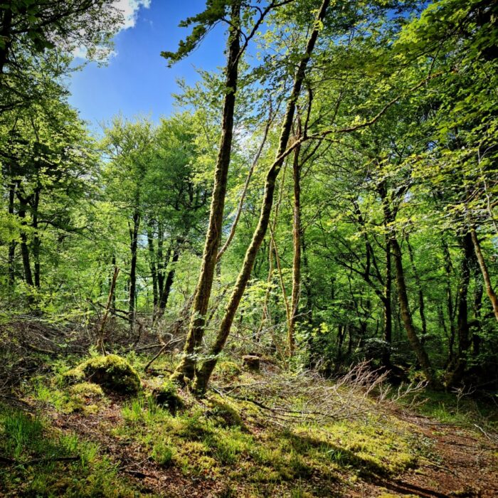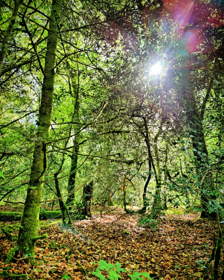 A peine revenu en Bretagne, je suis allé me promener en forêt. malgré les courtes averses de pluie, il faisait assez beau. En ce moment, on a vraiment un magnifique ciel bleu, puis dix minutes de flotte, et de nouveau un grand soleil. En forêt, c’est pas mal, car la pluie est largement arrêtée par les feuilles et ça ne m’a pas fait peur. Mais surtout, les éclaircies qui percent la canopée proposent encore des visions dignes d’un film de Miyazaki. Me likey!!!