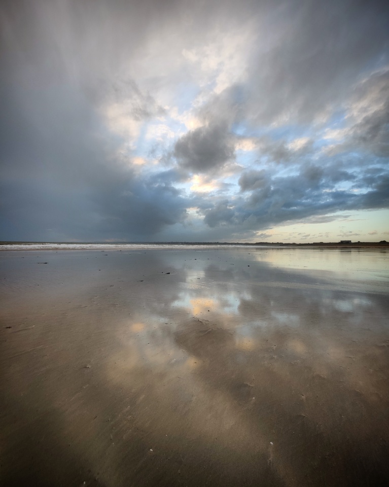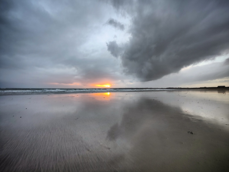 Les réflexions d’un ciel gigantesque et tourmenté, avec une percée à l’horizon ont fait mon petit bonheur simple du soir. ^^