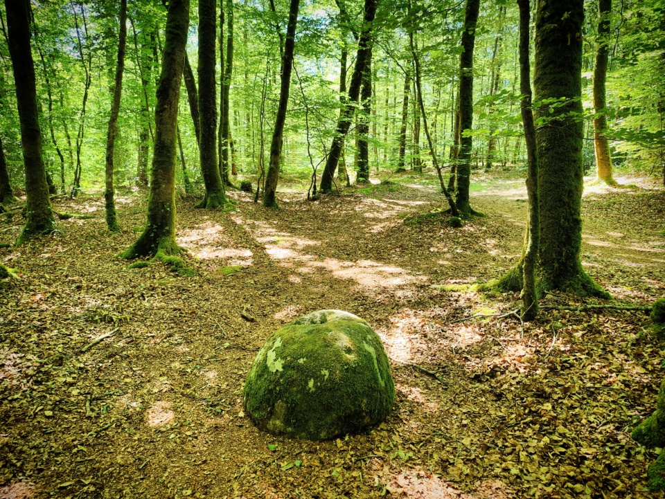 Et un peu plus loin, en pleine forêt, il y a cette étonnante stèle de Kerguéguen qui date de l’âge du fer, avec des cupules qui pourraient dater d’une christianisation plus récente.