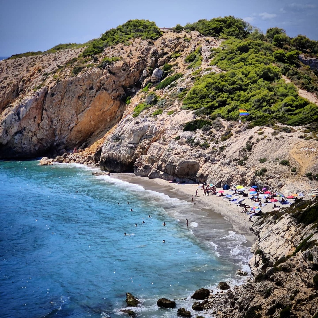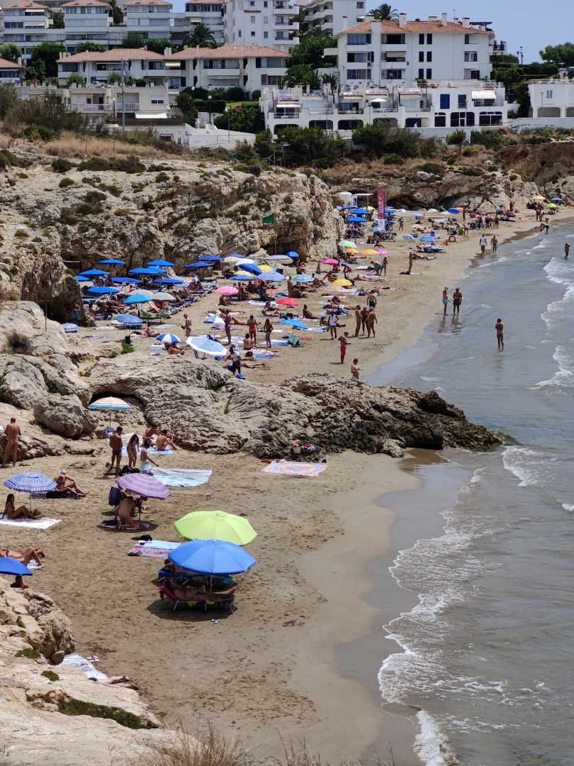Coté plage, nous avons testé les deux principales de Sitges, sachant qu’on recherche toujours des plages naturistes et plutôt gay-friendly. Là évidemment, on a des plages qui sont très très très très gay. Elles ont chacune leurs avantages et inconvénients. Ce qui est notable pour les deux, c’est qu’elles sont blindées du matin au soir. Et ça évidement pour moi c’est un gros défaut, je n’aime vraiment pas être entassé sur une plage, et je n’aime pas qu’on me regarde (trop), ni la promiscuité qui en découle. Après c’est un avantage pour des célibataires qui cherchent un terrain de chasse. Le terrain est fort giboyeux.