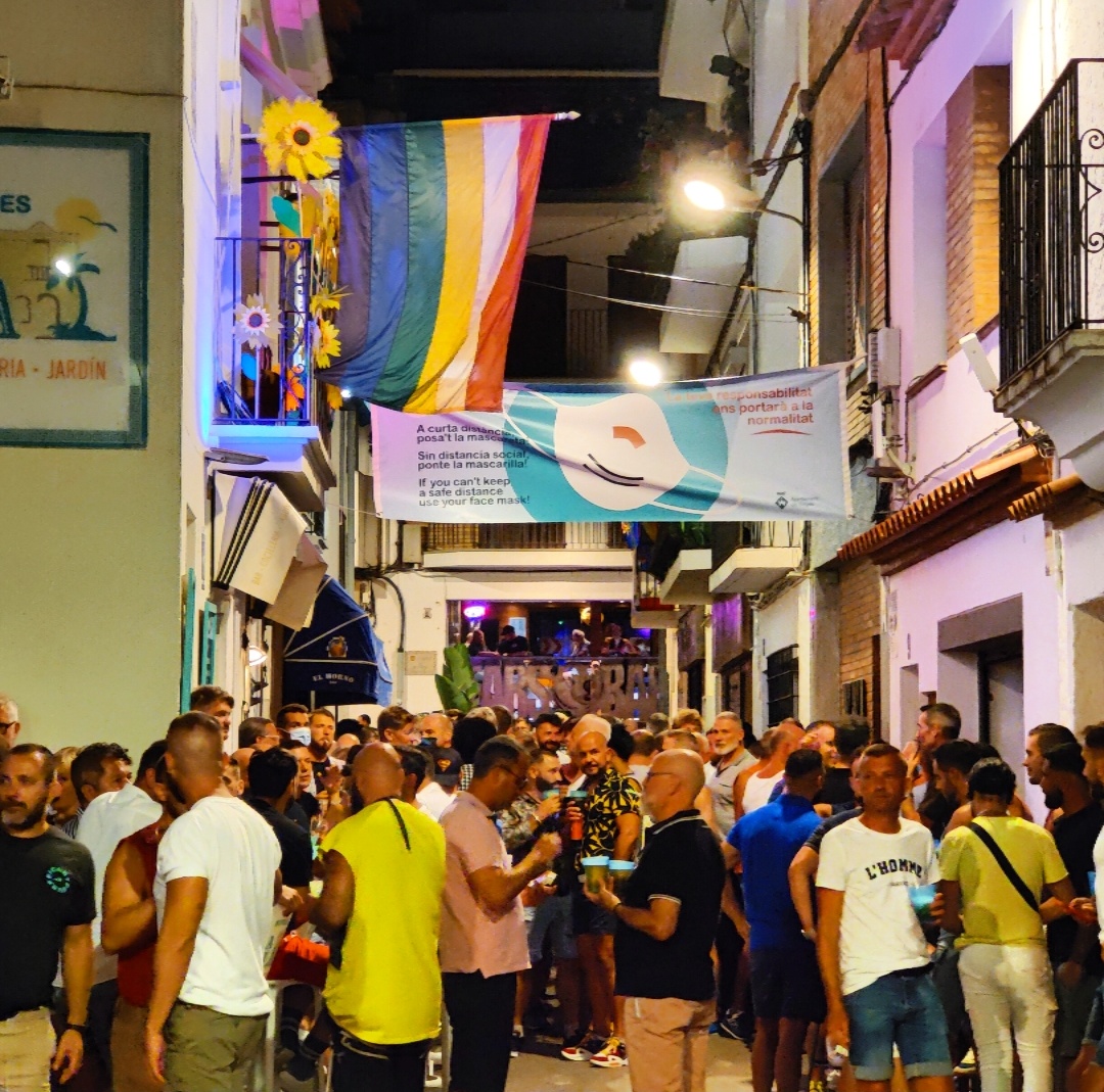 Le soir, la ville est moins fourmillante mais reste très occupée par les dîneurs à l’espagnole, donc tard (pour nous), et les visiteurs de bars qui doivent se dépêcher avec une fermeture à 00h30 et un couvre-feu à partir d’1h du matin. Il y a deux rues principales avec des bars, elles se croisent, l’une est hétéro et l’autre est homo. Les deux sont également remplies, même si la rue gay gagne toujours en densité et en vrombissements vocaux. Un petit air de la rue des Archives ne serait pas totalement fortuit.