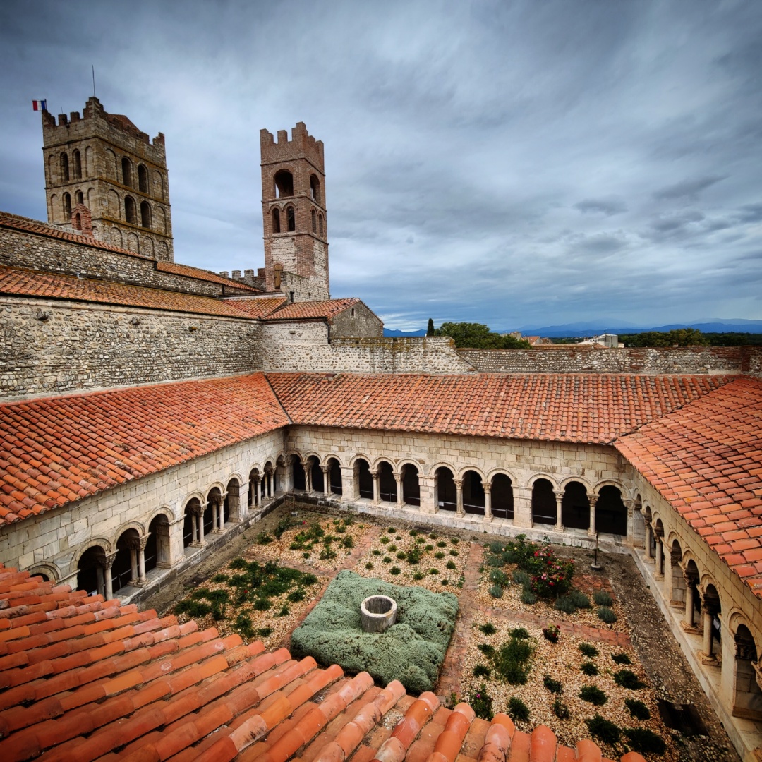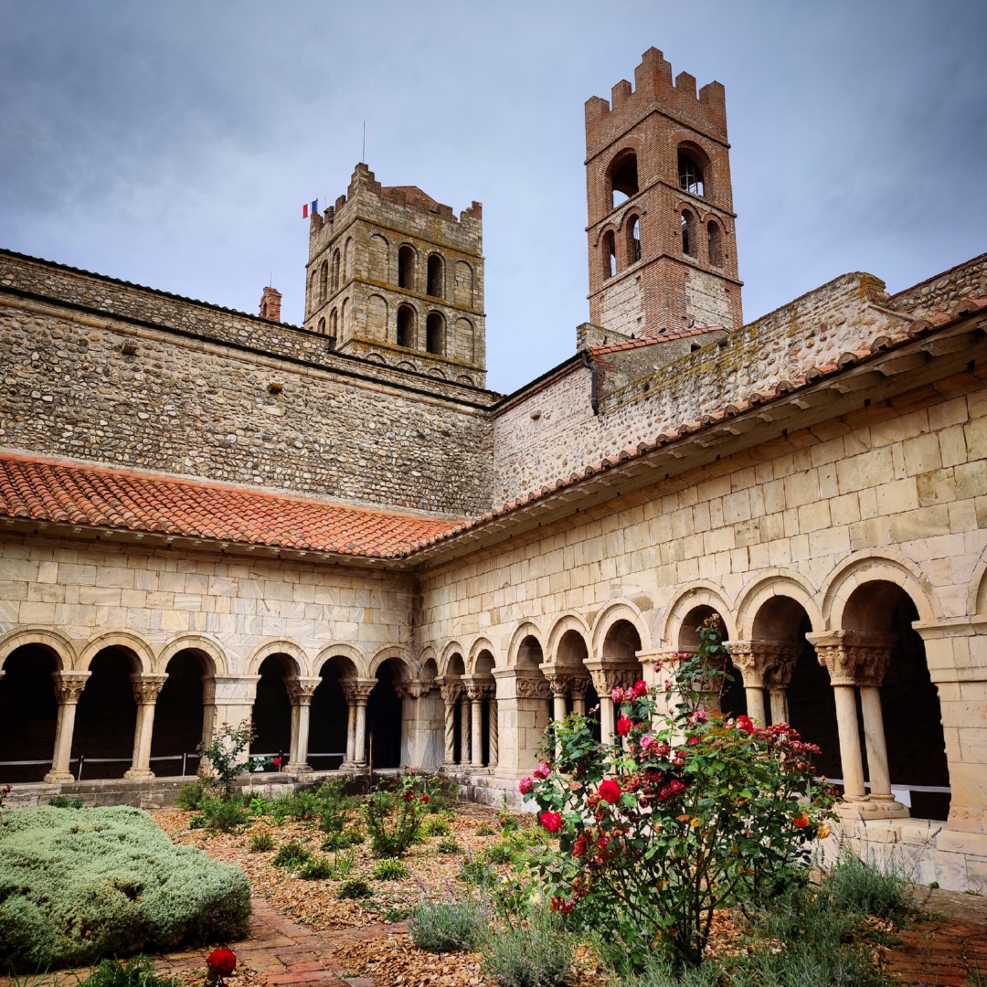 Elne est une jolie ville aux accents médiévaux très bien conservés, et avec sur le promontoire de la ville haute un superbe ensemble épiscopal roman (du Roussillon) formé par la cathédrale et le cloître. C’était une ville importante et donc un évêché au Moyen-Âge, mais Perpignan lui ayant soufflé la vedette, tous les travaux et toutes les ambitions ont été stoppés à Elne pour se concentrer sur la nouvelle capitale et cathédrale. L’avantage de cela, c’est qu’on se retrouve avec une magnifique architecture romane, avec quelques caractéristiques gothiques, et surtout un cloître qui a le mérite d’avoir été très peu remanié depuis le XIIe-XIVe (époques de construction).