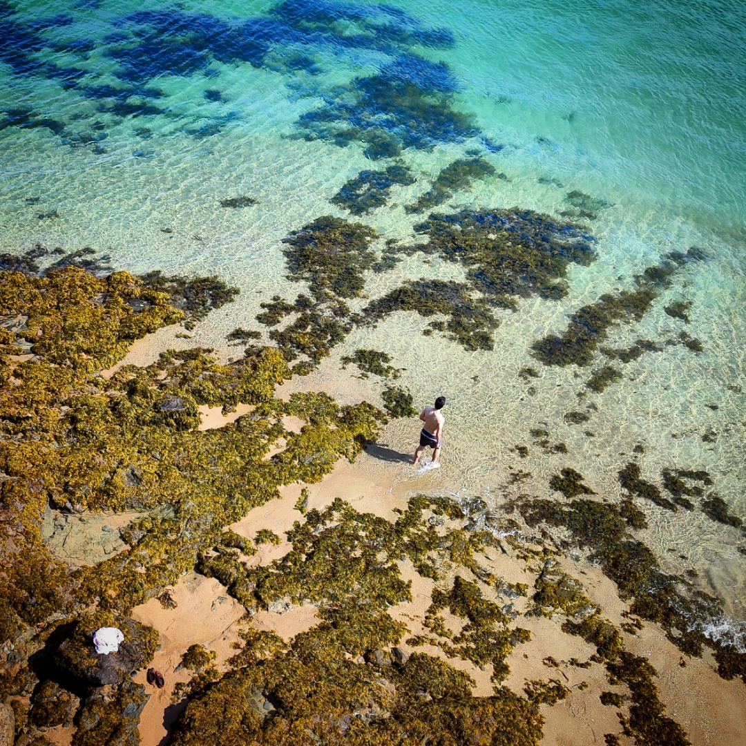 J’ai aussi pris d’en-haut ce jeune homme qui avait posé ses affaires pour aller se rafraichir. J’ai bien aimé le « plan » que cela m’offrait, et je l’ai espionné sans vergogne. Hu hu hu.