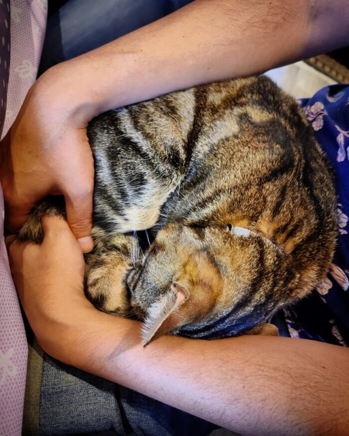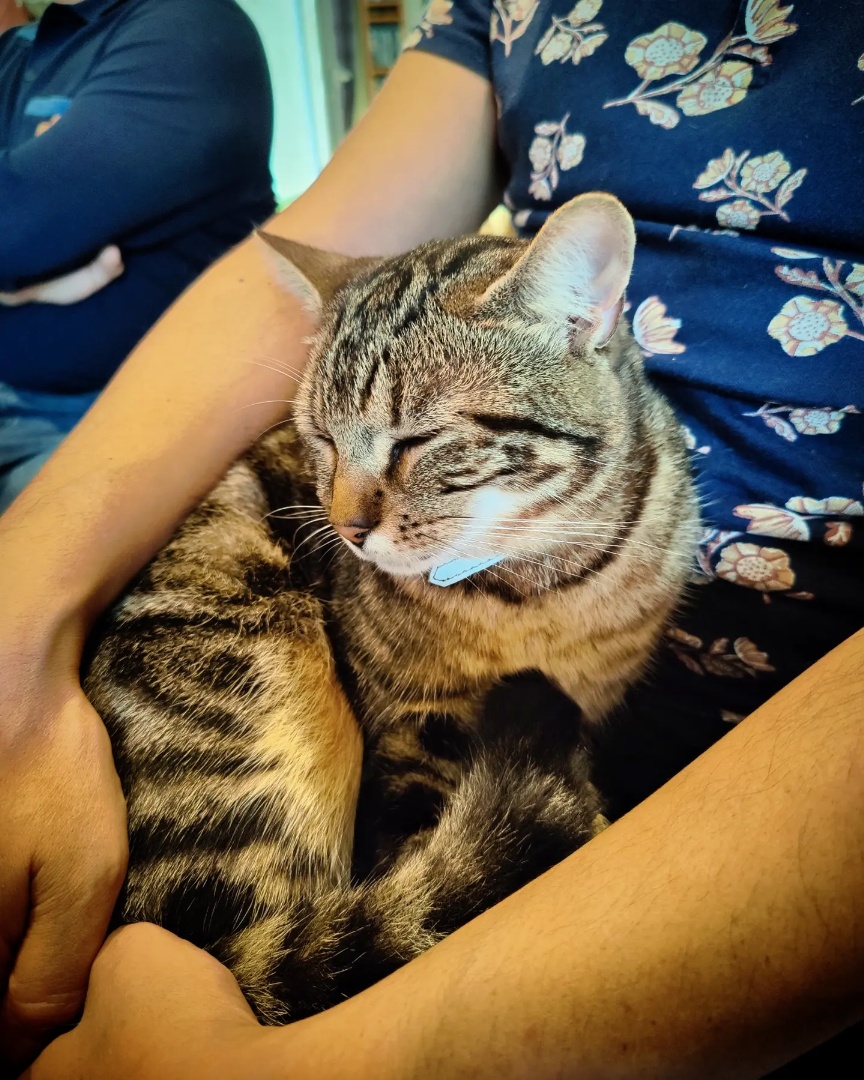 LE PETIT CHAT DE TA MAMAN EST SUPER ATTACHANT ENDORMI SUR LES GENOUX DE TON HOMME AINSI QUE VOTRE MERVEILLEUSE PETITE SOOKIE , JE PENSE A ARYIA AUSSI .