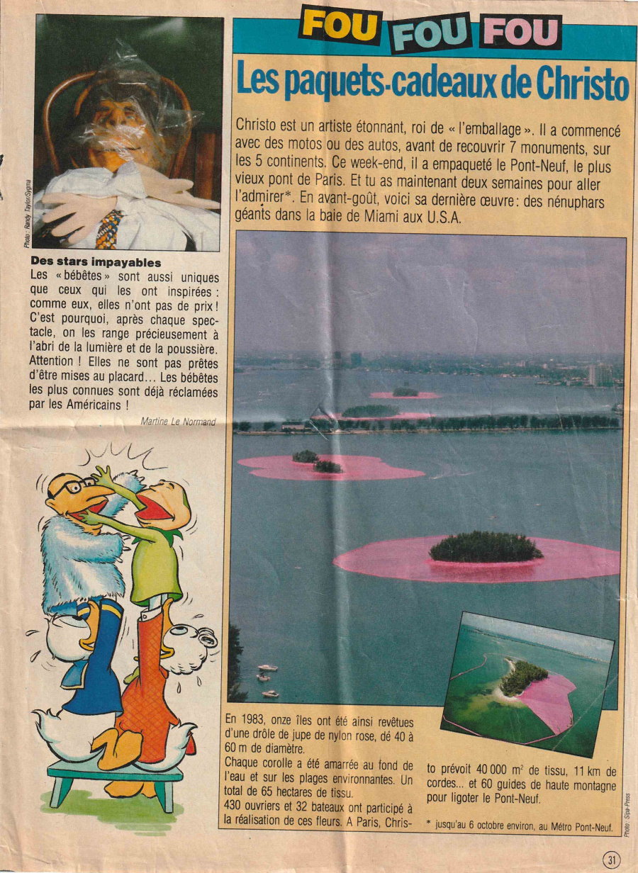 L’article parlait du Pont-Neuf mais évoquait aussi l’emballage « nénuphar » de 11 îles en 83. Je me rappelle avoir été totalement fasciné par ce récit et cette description. Et du haut de mes 9 ans, j’ai conservé tout ça sans aucune raison particulière. C’est juste que c’était tellement énorme, et ça me plaisait. Depuis, pendant ces 36 ans, j’ai entendu parler régulièrement de Christo, et évidemment je tendais l’oreille. En 1995, pour le Reichstag à Berlin, j’ai regretté de ne pas avoir fait le déplacement, et j’ai rongé mon frein.