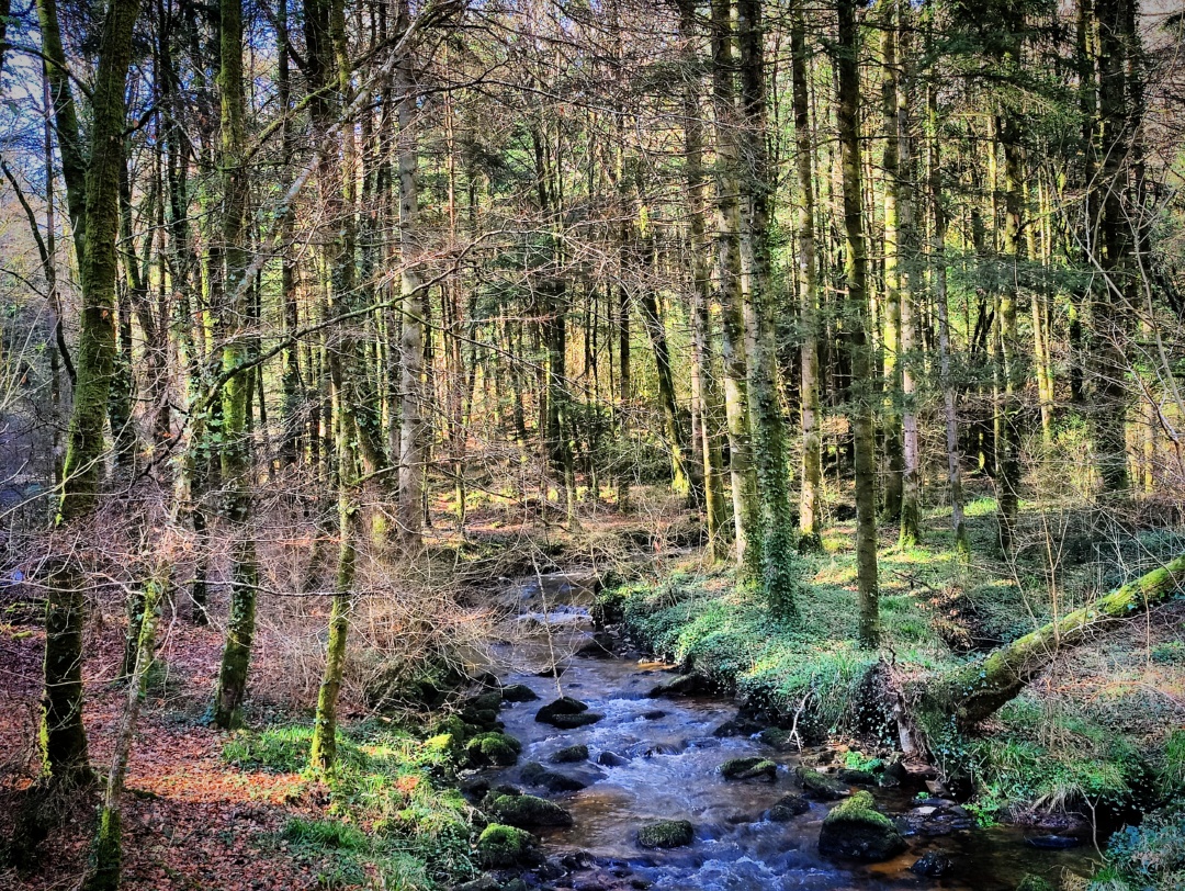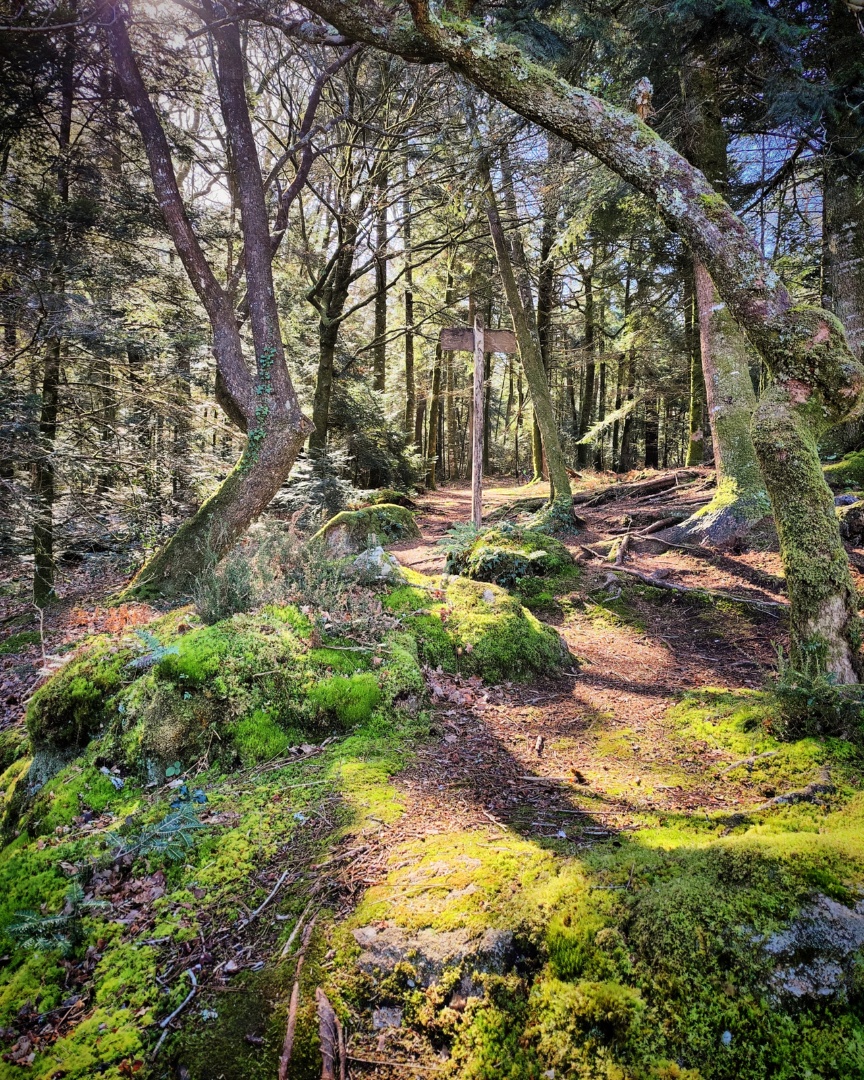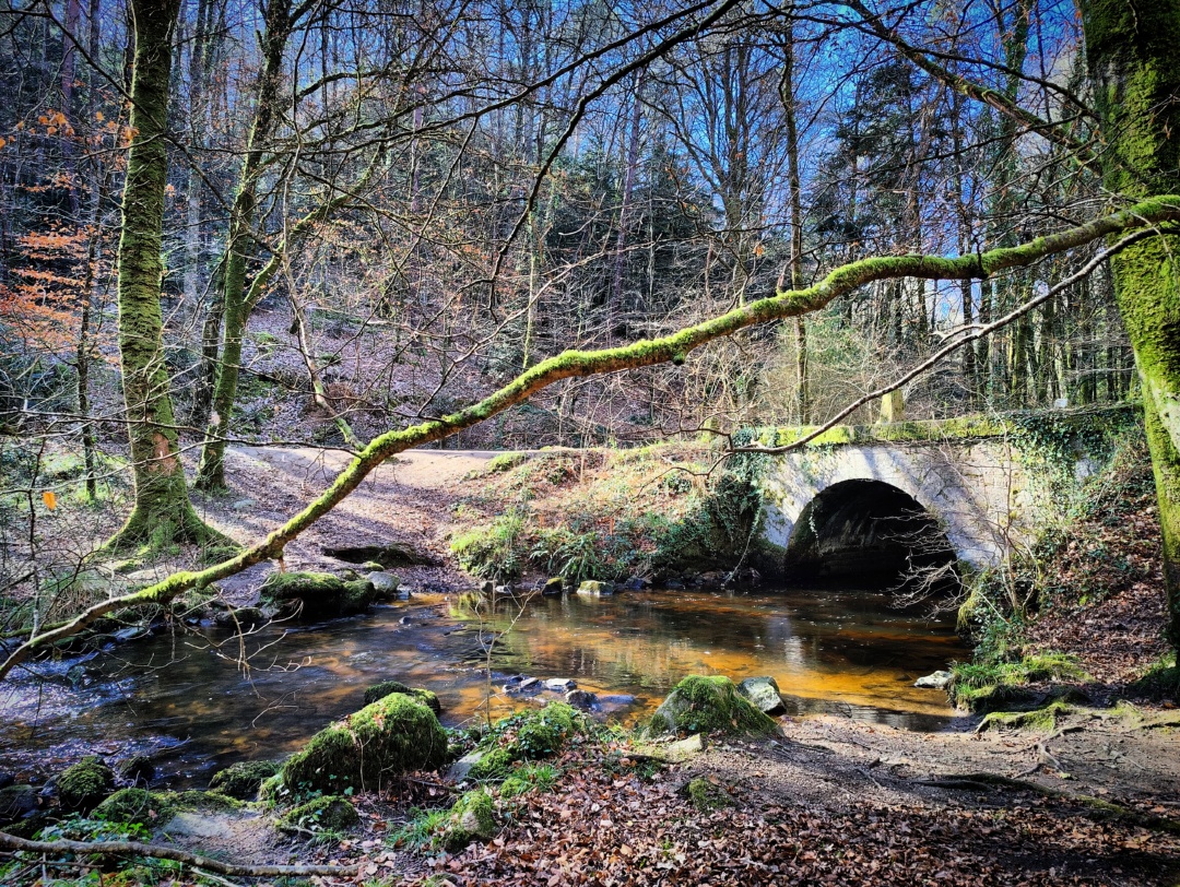 Il y a cette forêt dense et imposante, mais il y a aussi la Laïta et une kyrielle de cours d’eau qui la traverse, et toutes les saisons offrent des points de vue superbes. Il y a aussi des traces de l’activité intense de la forêt, et c’est autant les anciens sabotiers et travailleurs du 19ème, que l’activité portuaire et fluviale de toujours, que les moines et l’abbaye au XIe, que les traces de l’âge du fer, que celles du néolithique avec les mégalithes qu’on voit encore là.