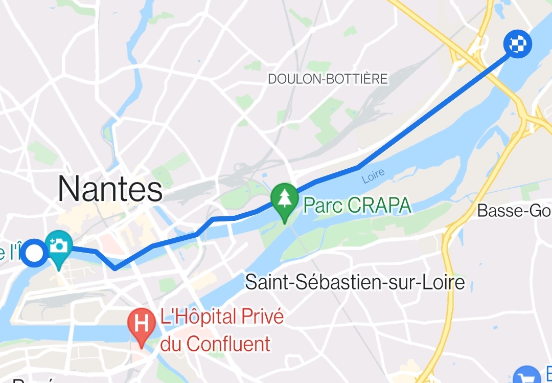 On a pris des vélos pour se promener aujourd’hui, et c’est assez drôle de constater qu’on est totalement sorti de paysages urbains après 20 minutes de pédalage. En suivant la Loire, on a des très bonnes pistes cyclables, et on quitte assez rapidement Nantes, on peut continuer comme cela sur plusieurs dizaines de kilomètres, et les paysages sont tout de suite très bucoliques.
