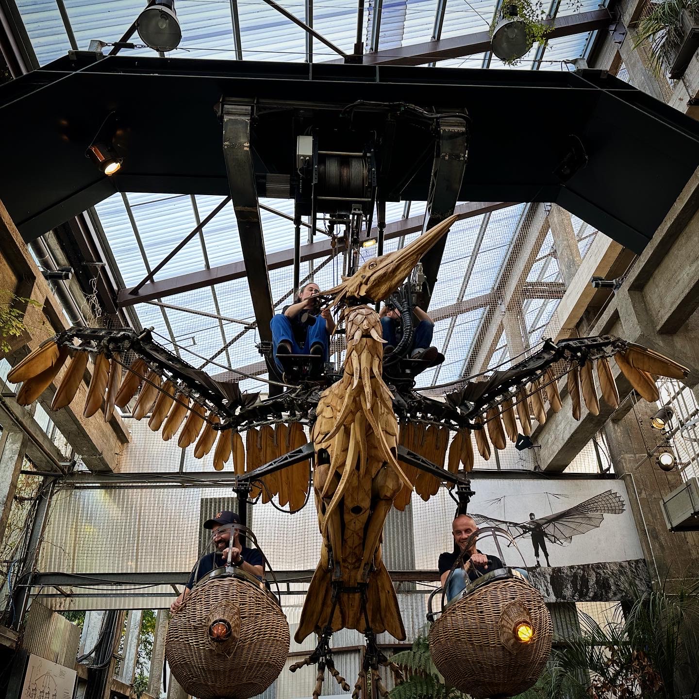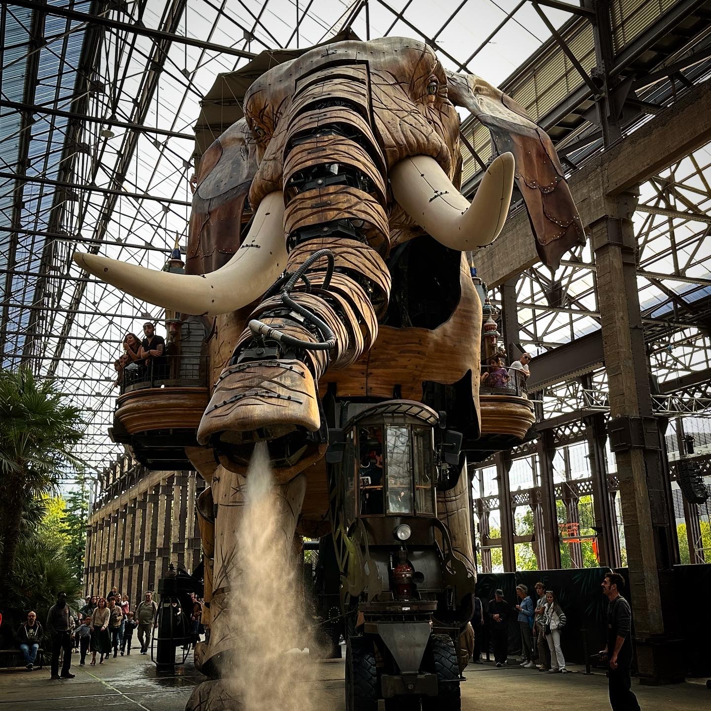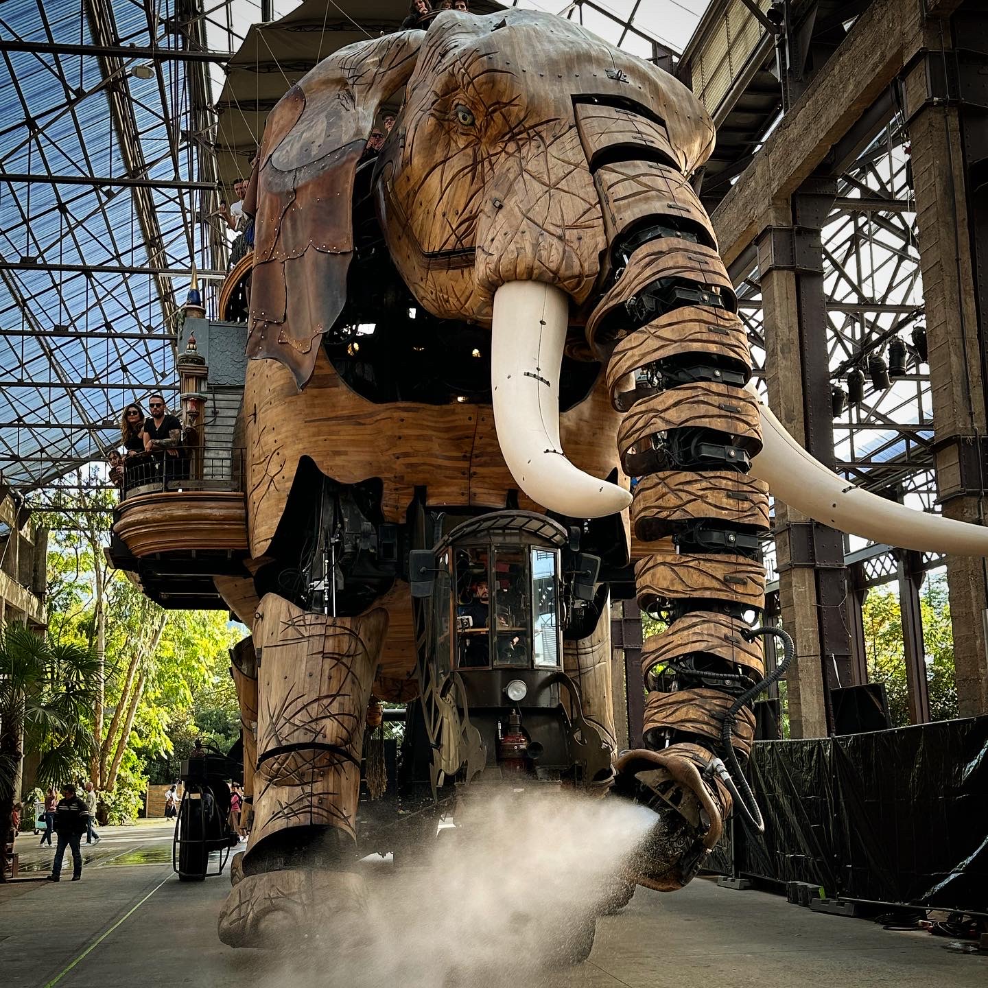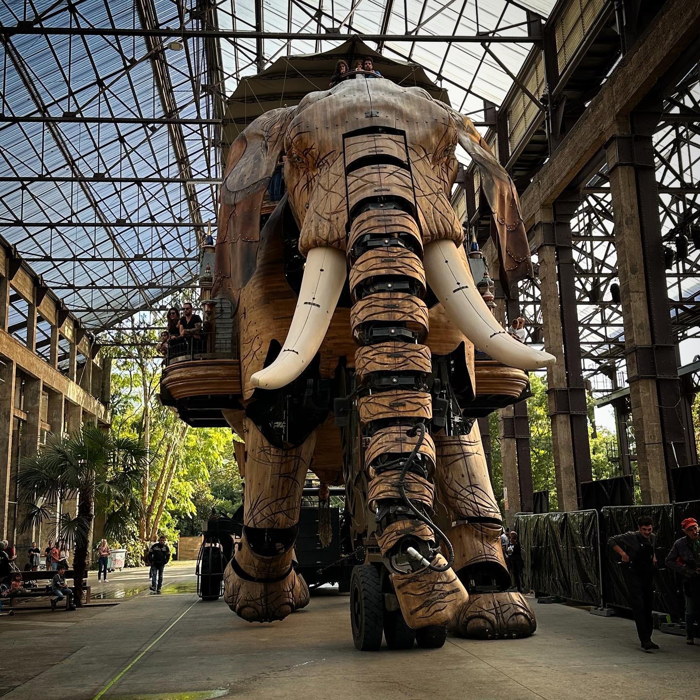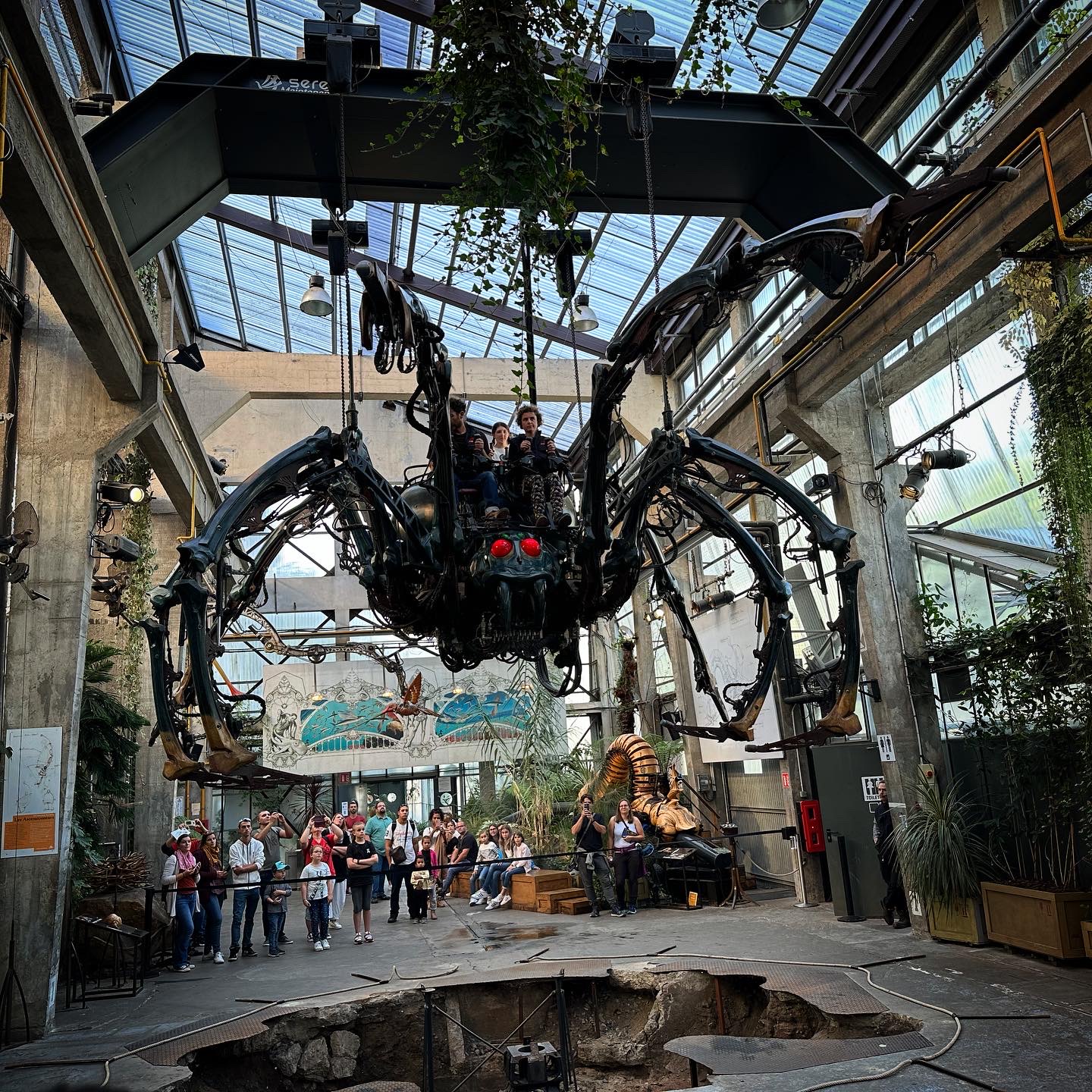 On a enfin eu l’occasion avec la visite PH ce week-end de se faire la « galerie des Machines » sur l’Île de Nantes. En complément du Grand Eléphant qu’on voit toutes les semaines (et dont je ne me lasse pas, ce truc reste absolument merveilleux) en face de la maison, la galerie présente différents automates qui sont les préparatifs du gigantesque et incroyable projet de l’Arbre aux Hérons qui devrait/aurait dû/pourrait prendre place au Jardin Extraordinaire de Nantes.