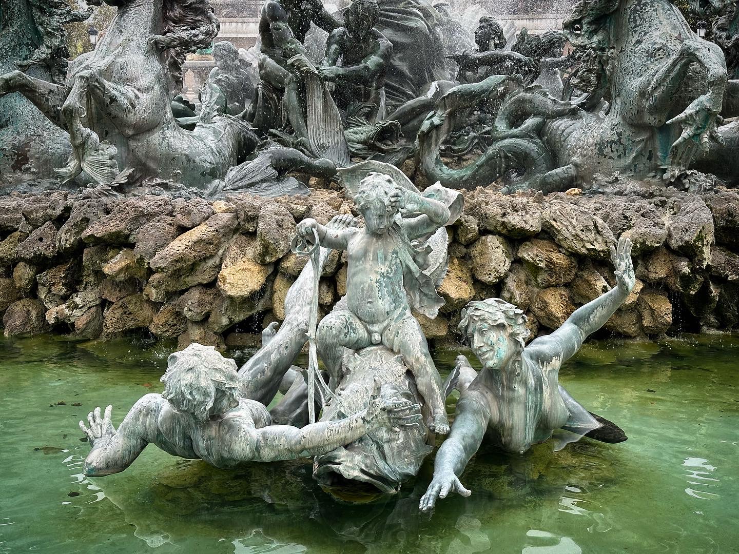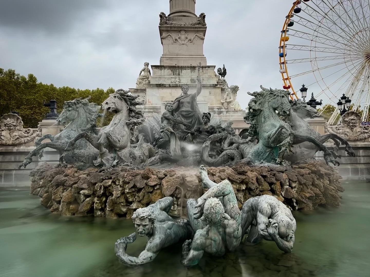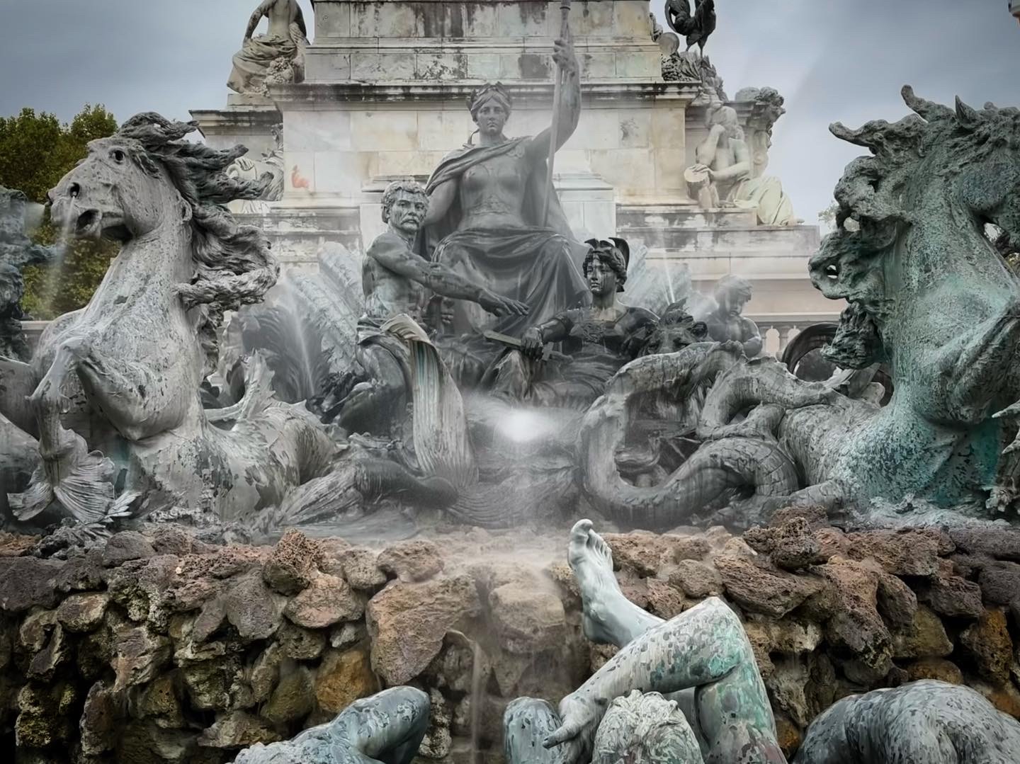 Mais j’ai découvert de plus près les fontaines du monument aux Girondins sur la place des Quinconces. Je pense que je ne m’étais jamais bien approché de là, et cette fois j’ai été frappé par la beauté de ces œuvres. Alors c’est tout de même très pompier comme allégorie, mais je trouve les sculptures formellement très belles, et il y a une vraie émotion et tonitruante énergie qui se dégagent de tout cela.