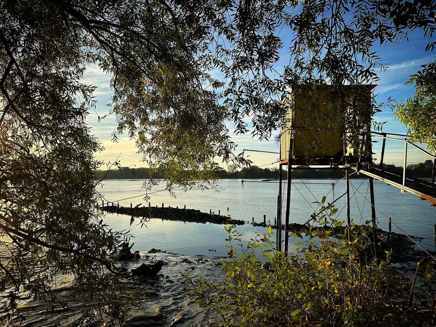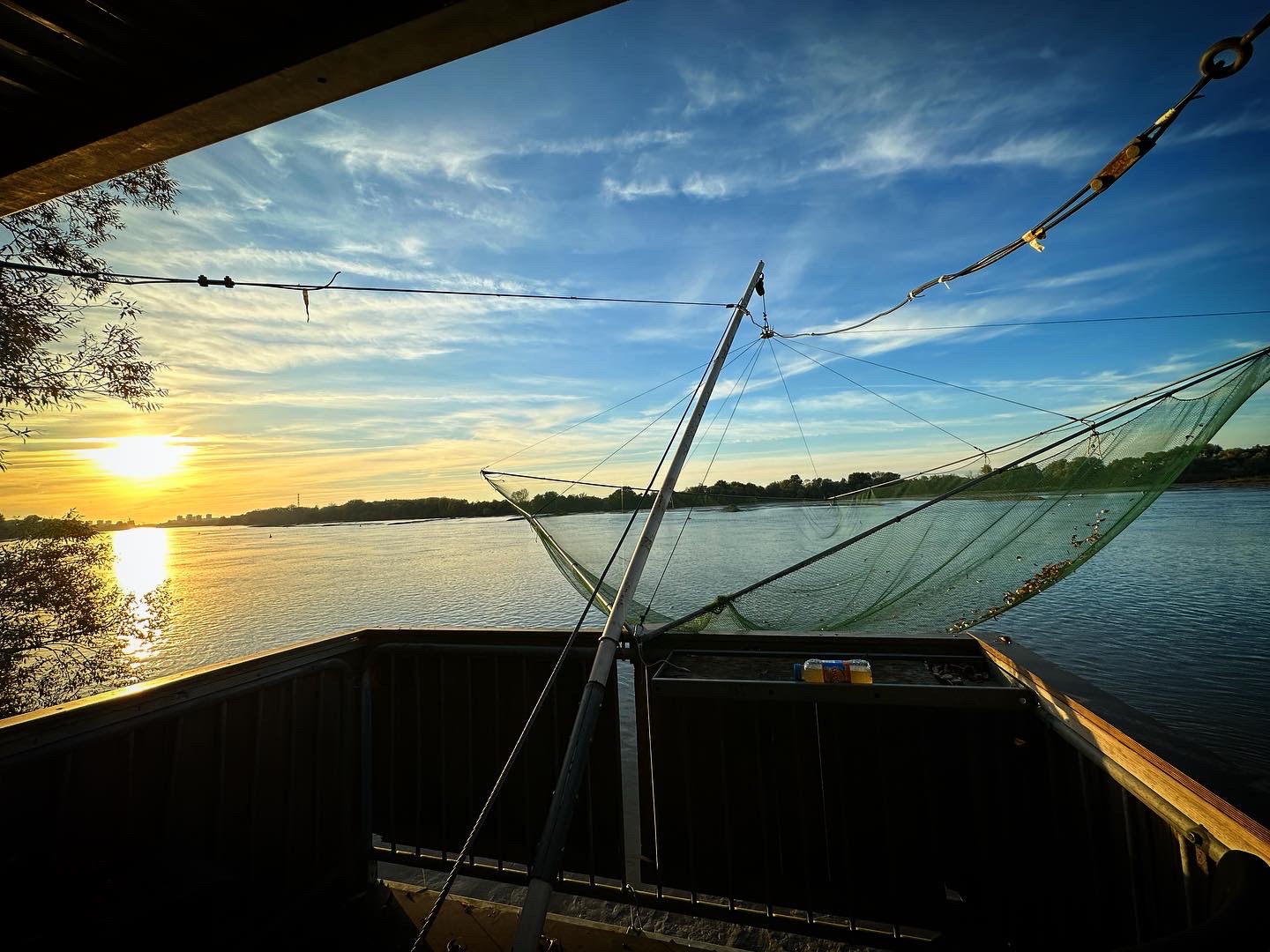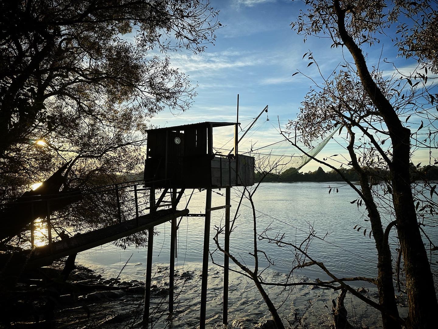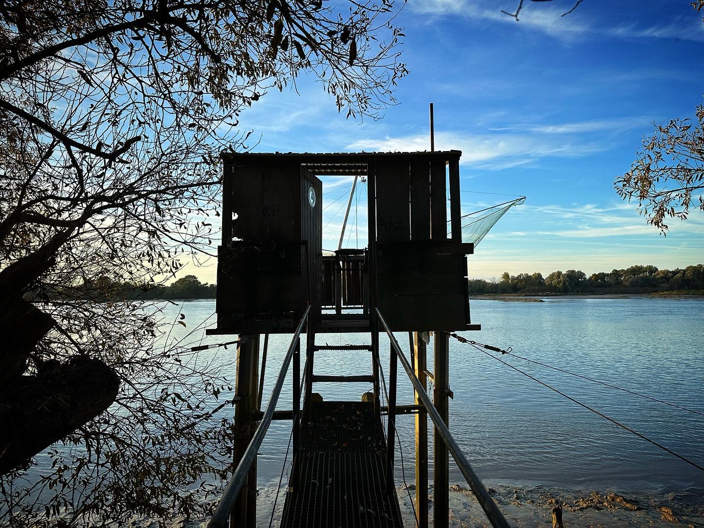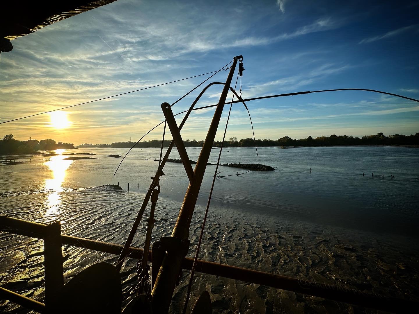 On est encore au bord de la Loire, et il y a des carrelets qui m’ont rappelé les Charentes. Avec le soleil couchant, c’était vraiment splendide.