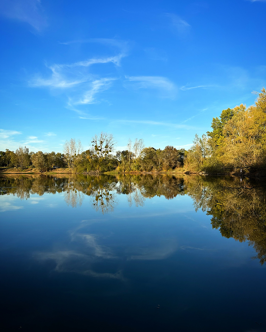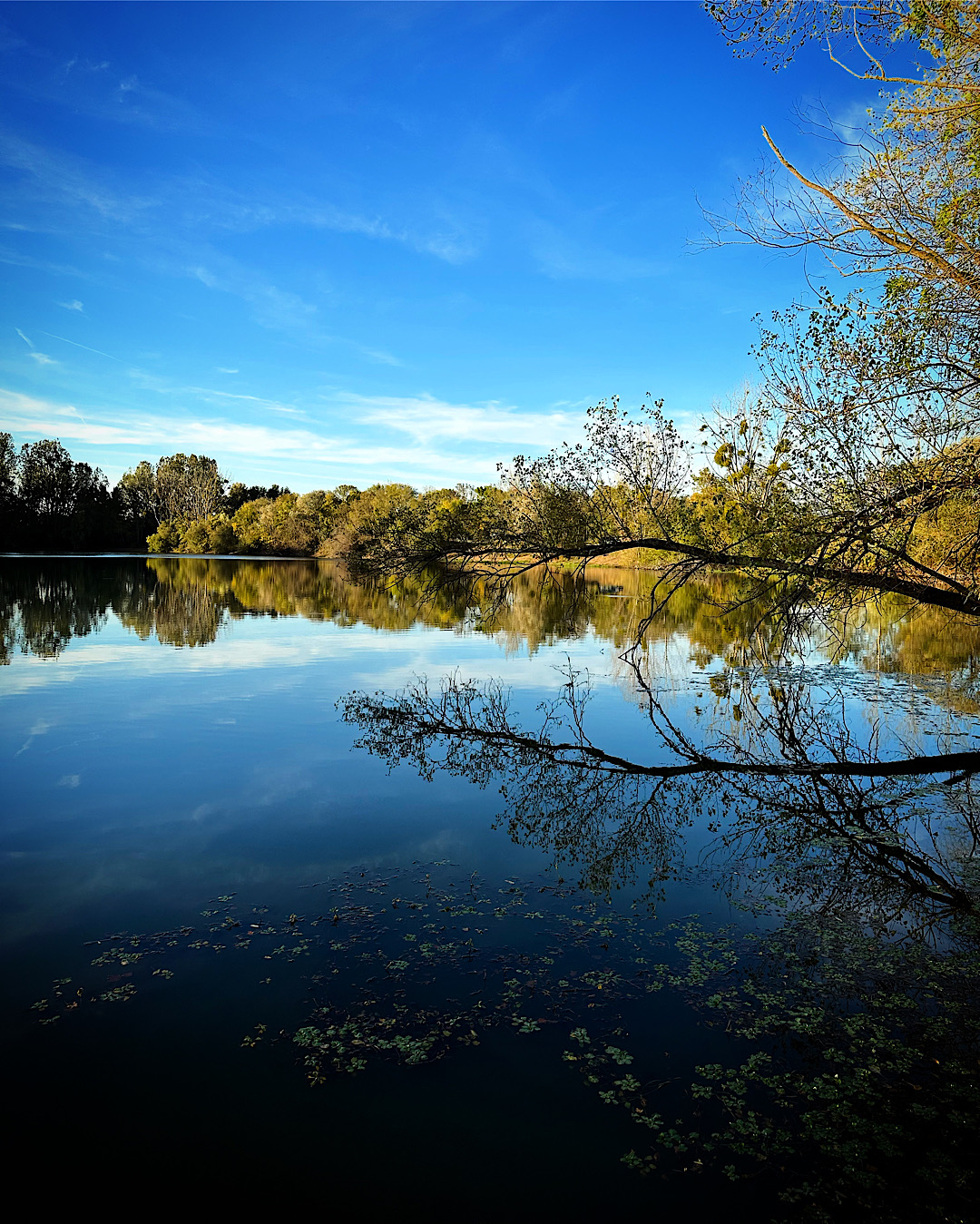 J’ai continué à pédaler le long de la Loire vers Basse-Goulaine, et un joli étang qui est en réalité au bord du périphérique nantais. C’est un gros contraste entre le charme et la quiétude apparente de l’endroit, et le bruit des bagnoles à cent mètres.
