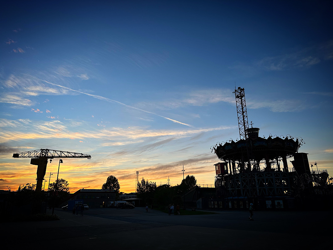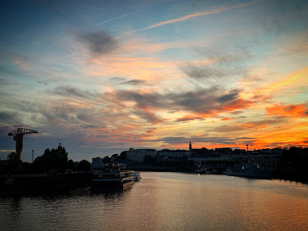 En rentrant sur Nantes, le soleil était tout juste couché, et on a eu droit à une belle palette de couleurs depuis l’Île de Nantes.