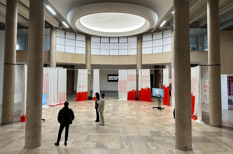J’adore qu’on puisse utiliser un espace si immense et abstrait pour y installer des choses simples et percutantes comme ces chaises (il y a avait du son) qui figurent tous ces gens qui manquent à l’appel.