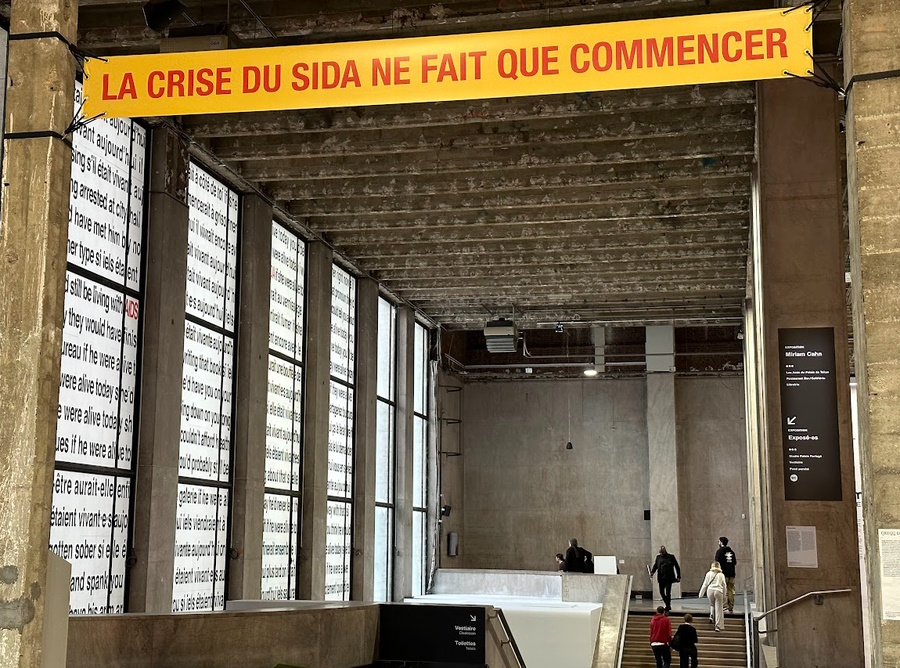 Le sida a marqué mon enfance et mon adolescence, mais c’était très loin de moi avant que je ne devienne moi-même actif sexuellement (pas spécialement pédé, vu que je suis pédé depuis la naissance ^^ ). Je me rappelle de la peur qui était instillée chez tout un chacun, et ce n’était pas facile de vivre avec cette peur de la sexualité (raccourcis vraiment très courant à l’époque, même certains vivaient encore l’insouciance des vertes années). La maladie ayant décimé nos aînés pédés, elle a aussi énormément marqué les artistes, eux-mêmes queers ou allié·e·s, et cette exposition est passionnante dans ce qu’elle convoque les oeuvres d’hier et d’aujourd’hui sur cette épidémie qui comme on le voit sur le bandeau d’accueil ne fait que commencer.