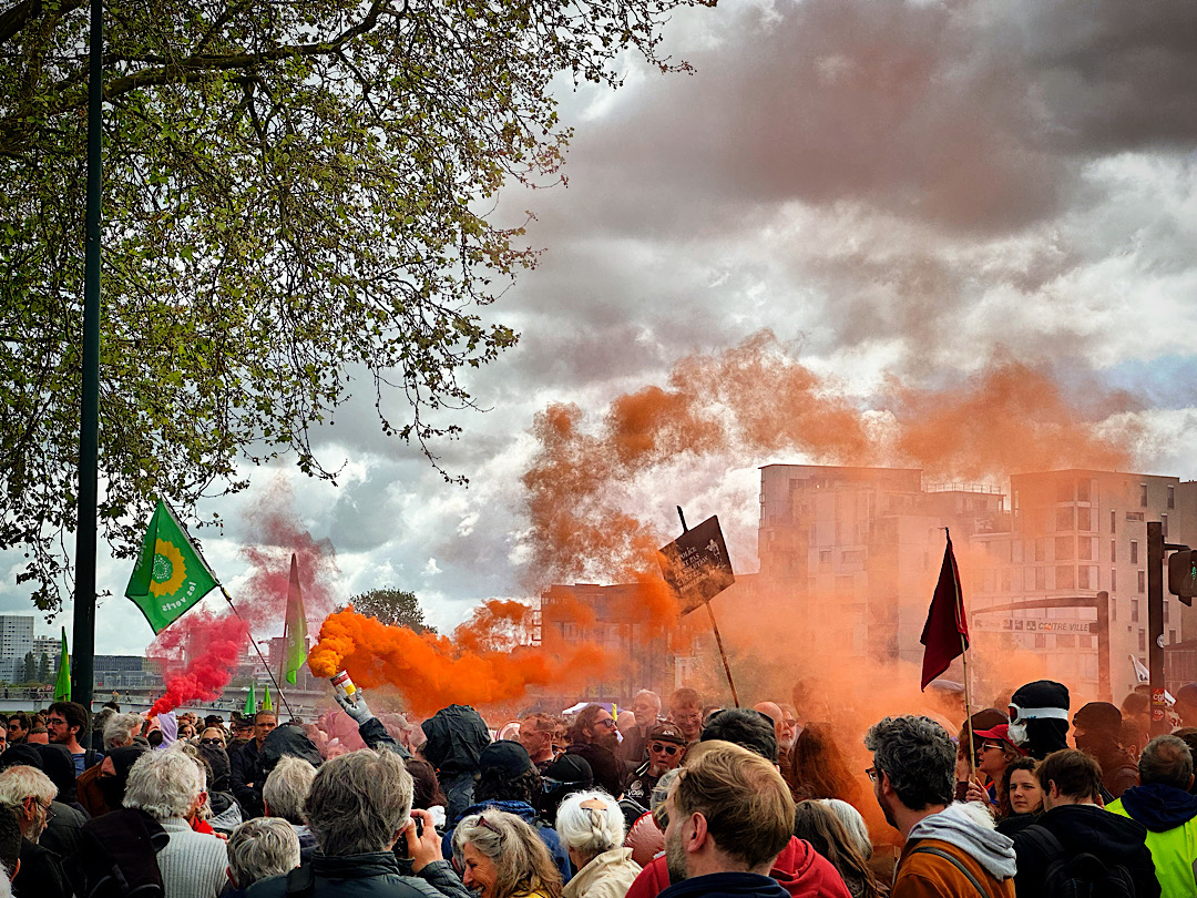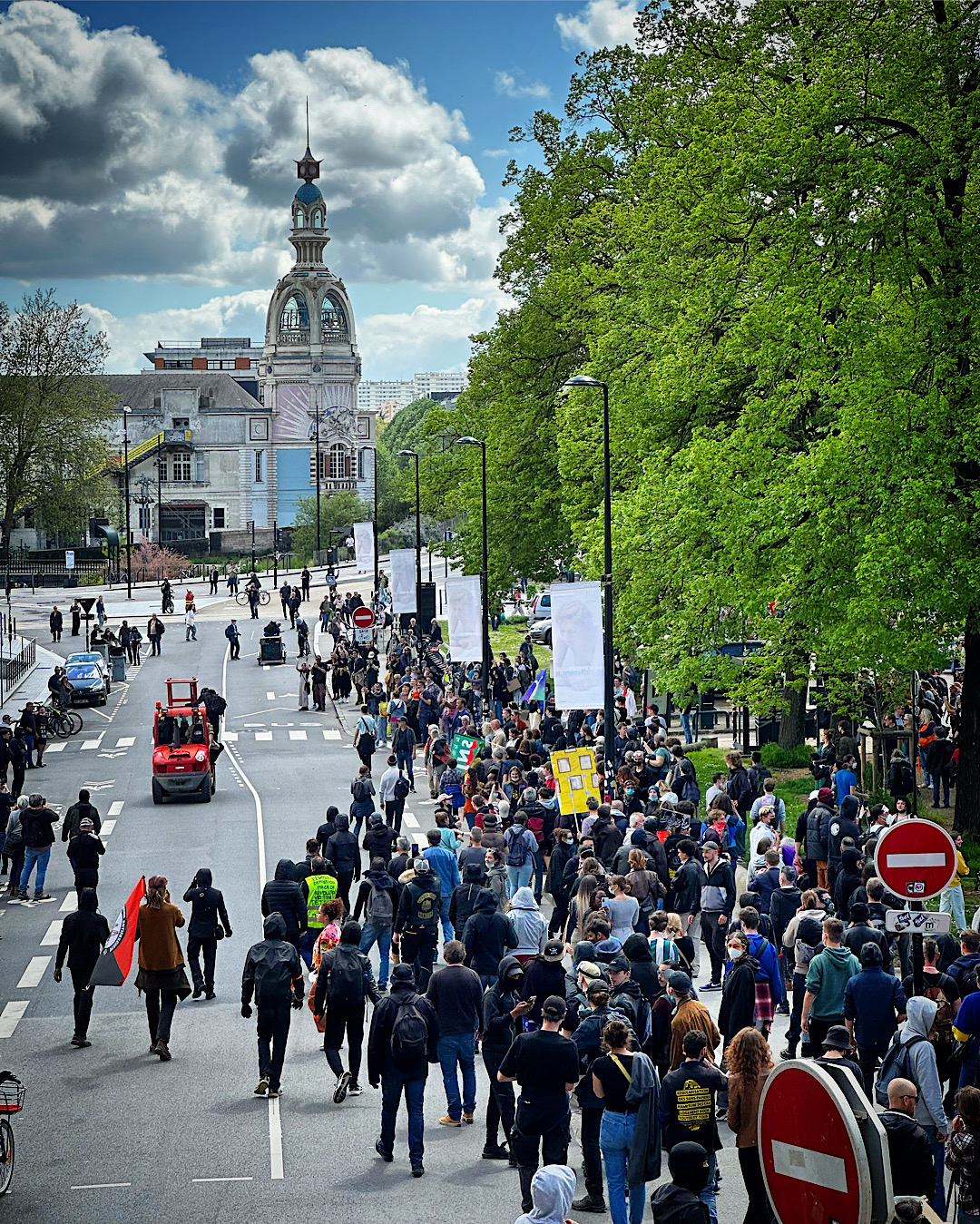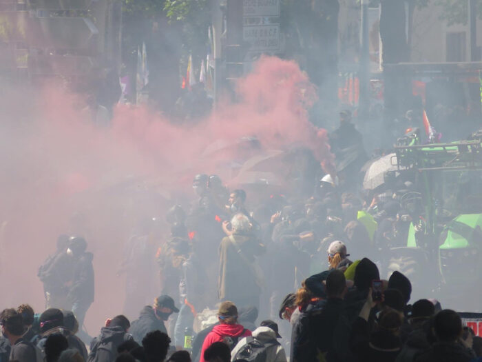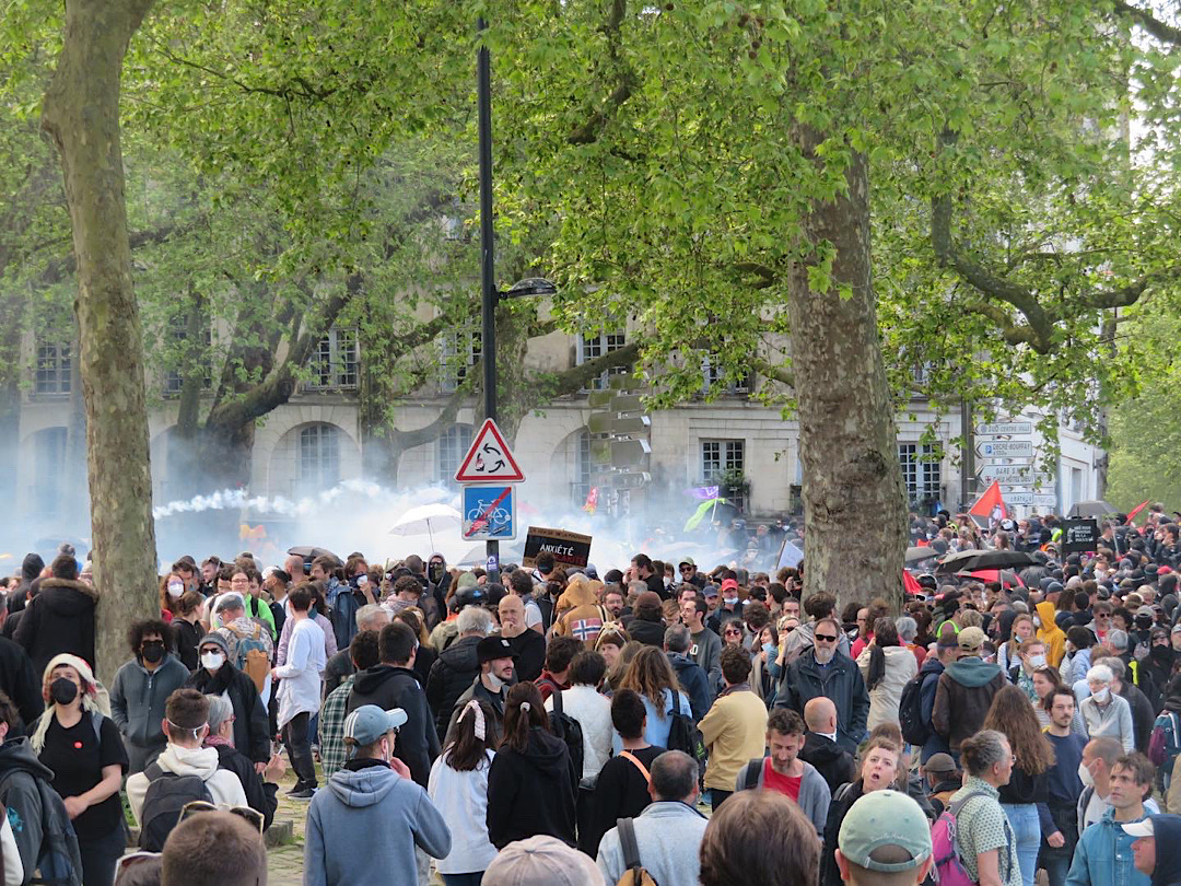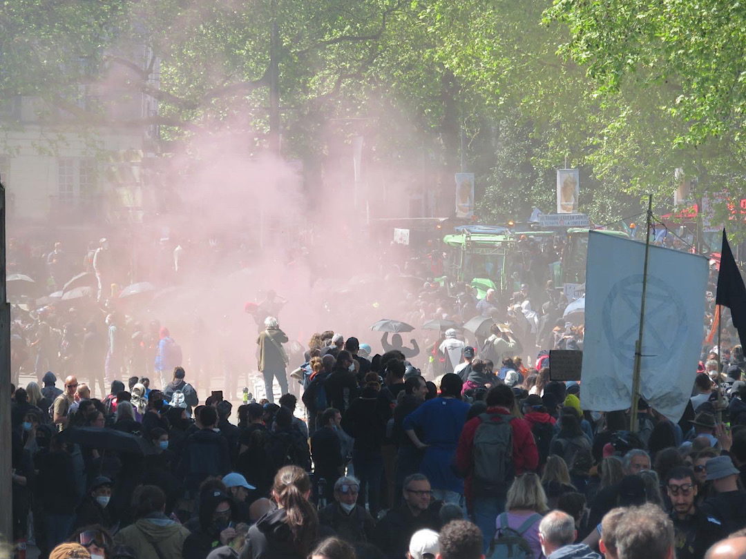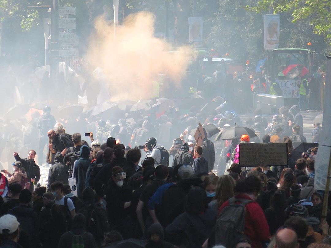 Comme tous les 1er mai, c’était très syndical mais aussi plutôt familial et bon enfant, mais il y avait vraiment beaucoup de monde, et la manifestation était clairement affirmée contre la réforme des retraites. En voyant les blacks blocs bien en masse et harnachés, il fallait bien se douter que les échauffourées arriveraient.