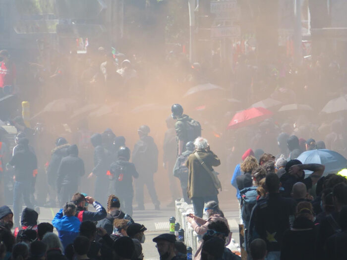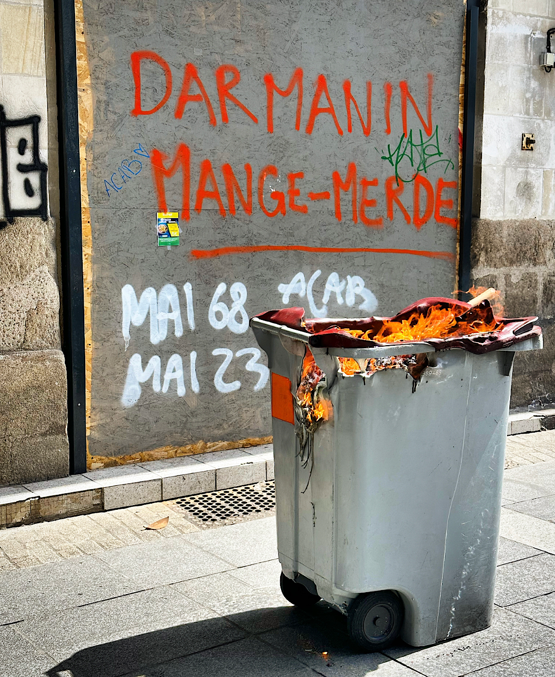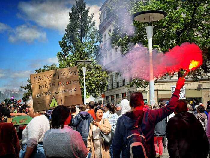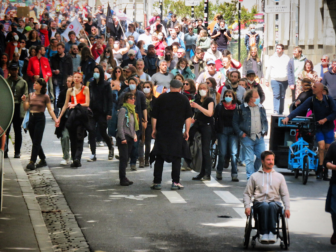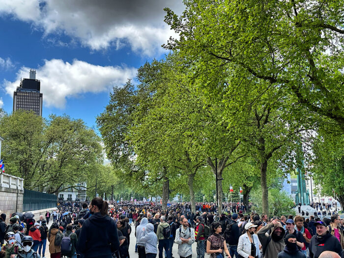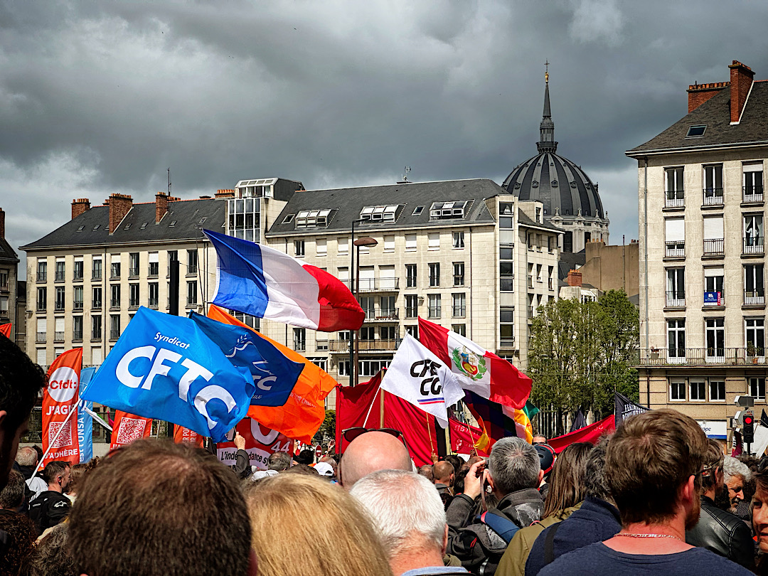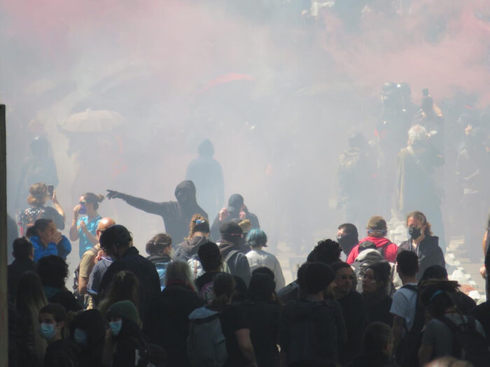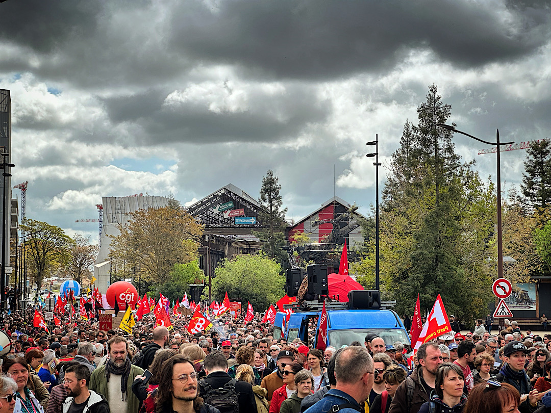Comme tous les 1er mai, c’était très syndical mais aussi plutôt familial et bon enfant, mais il y avait vraiment beaucoup de monde, et la manifestation était clairement affirmée contre la réforme des retraites. En voyant les blacks blocs bien en masse et harnachés, il fallait bien se douter que les échauffourées arriveraient.