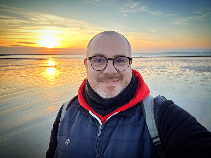On a une très belle semaine, et des amis nous ont rejoint hier pour profiter des quelques jours du week-end prolongé de l’Ascension. J’ai l’impression d’ailleurs que ce sera bien calme dans les boîtes email demain (enfin aujourd’hui, c’est la nuit là). Hier soir, on a pique-niqué à Kerroc’h justement, et on a finit la journée à Fort-Bloqué pour un joli coucher de soleil reflet dans un miroir d’eau à marée basse.