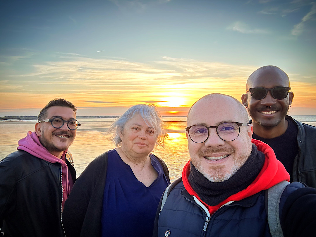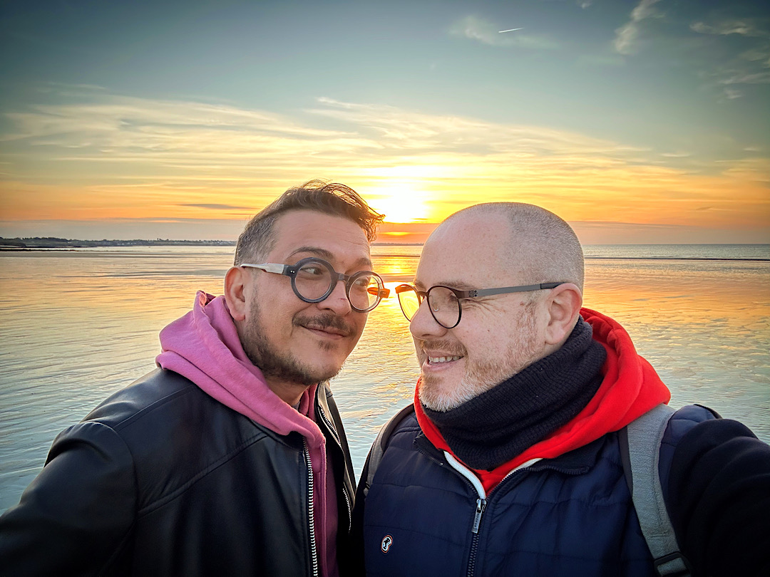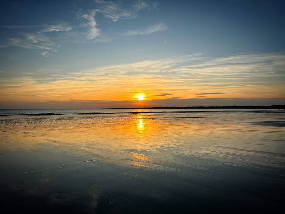On a une très belle semaine, et des amis nous ont rejoint hier pour profiter des quelques jours du week-end prolongé de l’Ascension. J’ai l’impression d’ailleurs que ce sera bien calme dans les boîtes email demain (enfin aujourd’hui, c’est la nuit là). Hier soir, on a pique-niqué à Kerroc’h justement, et on a finit la journée à Fort-Bloqué pour un joli coucher de soleil reflet dans un miroir d’eau à marée basse.