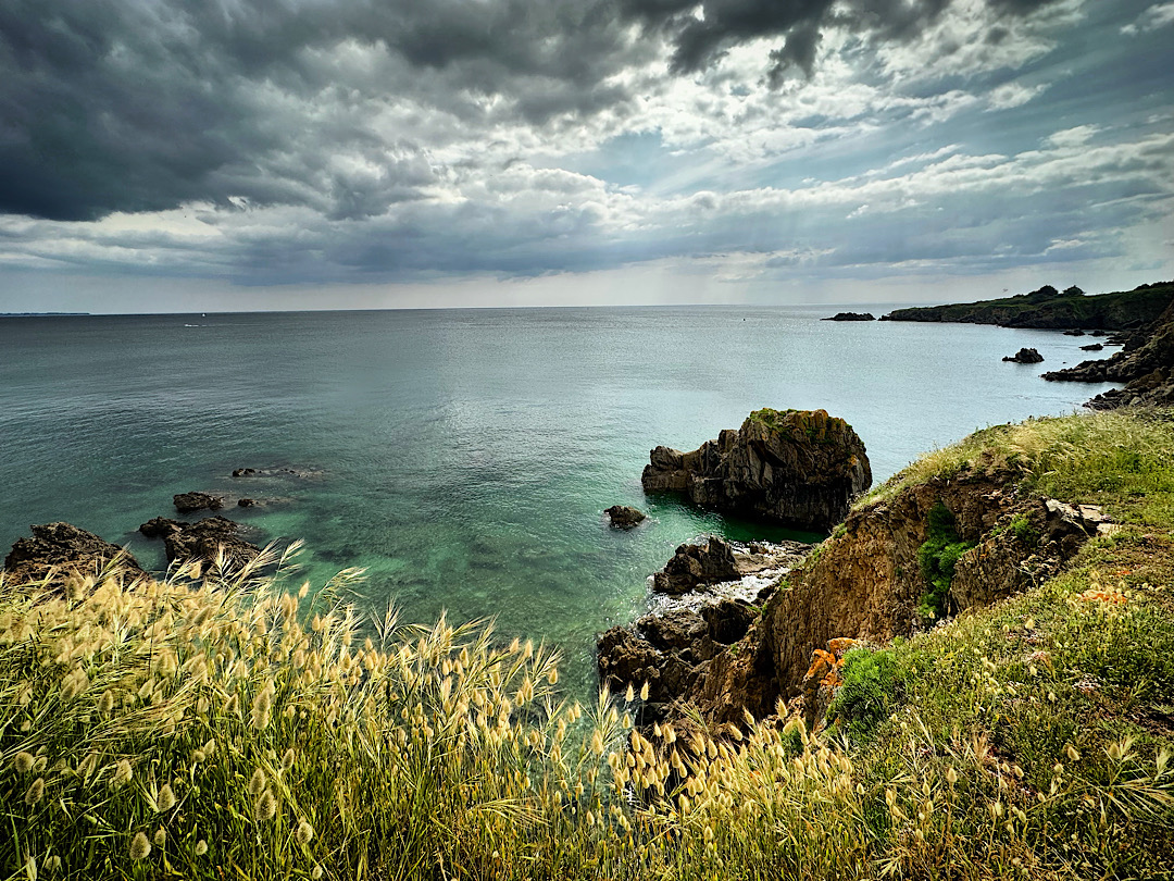 Et aujourd’hui même avec un ciel un peu plus tourmenté (mais pas une goutte de pluie), on a eu droit à de bien jolies couleurs et nuances pouldusiennes de bleu et de vert. On ne s’en lasse pas, ces paysages ne sont jamais vraiment les mêmes.