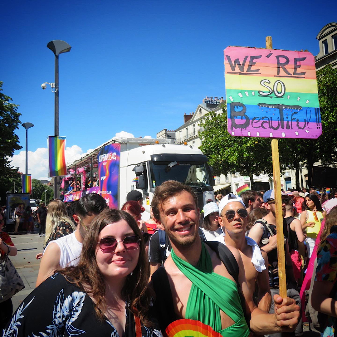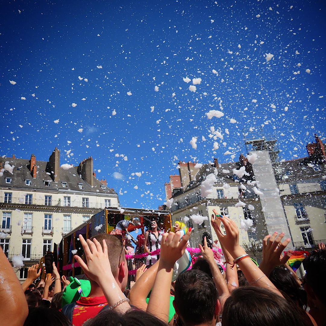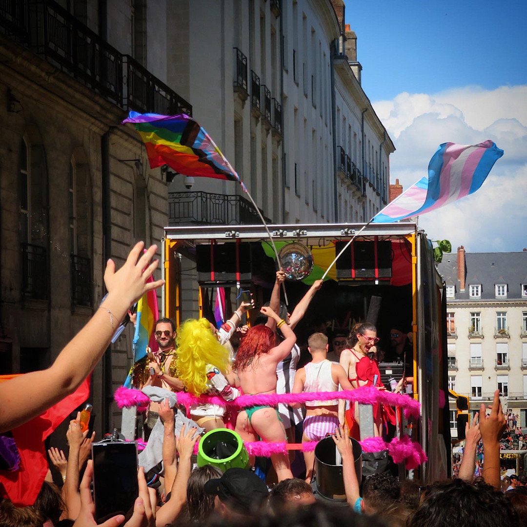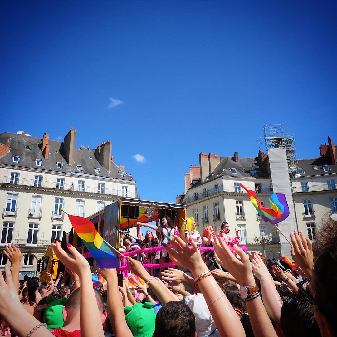 C’était une très belle Marche de Fiertés nantaise, un peu à l’image de l’année dernière, avec des tas de gens de tous les âges, les styles et les revendications. Des drapeaux dans tous les sens, de la musique, des pancartes et des invertis de toutes les sortes. Hu hu hu.
