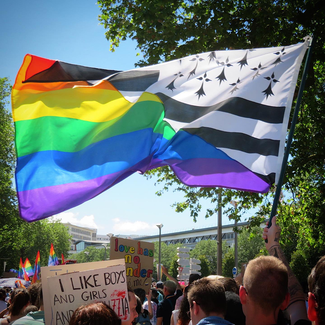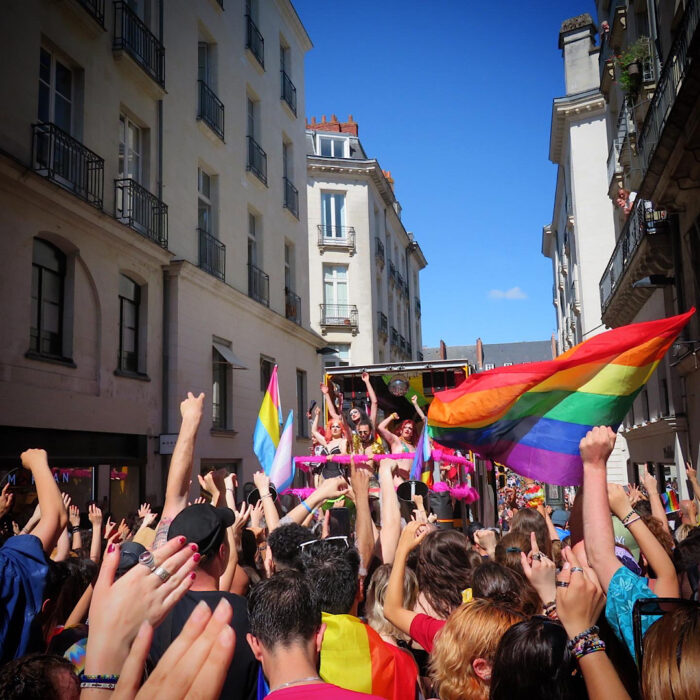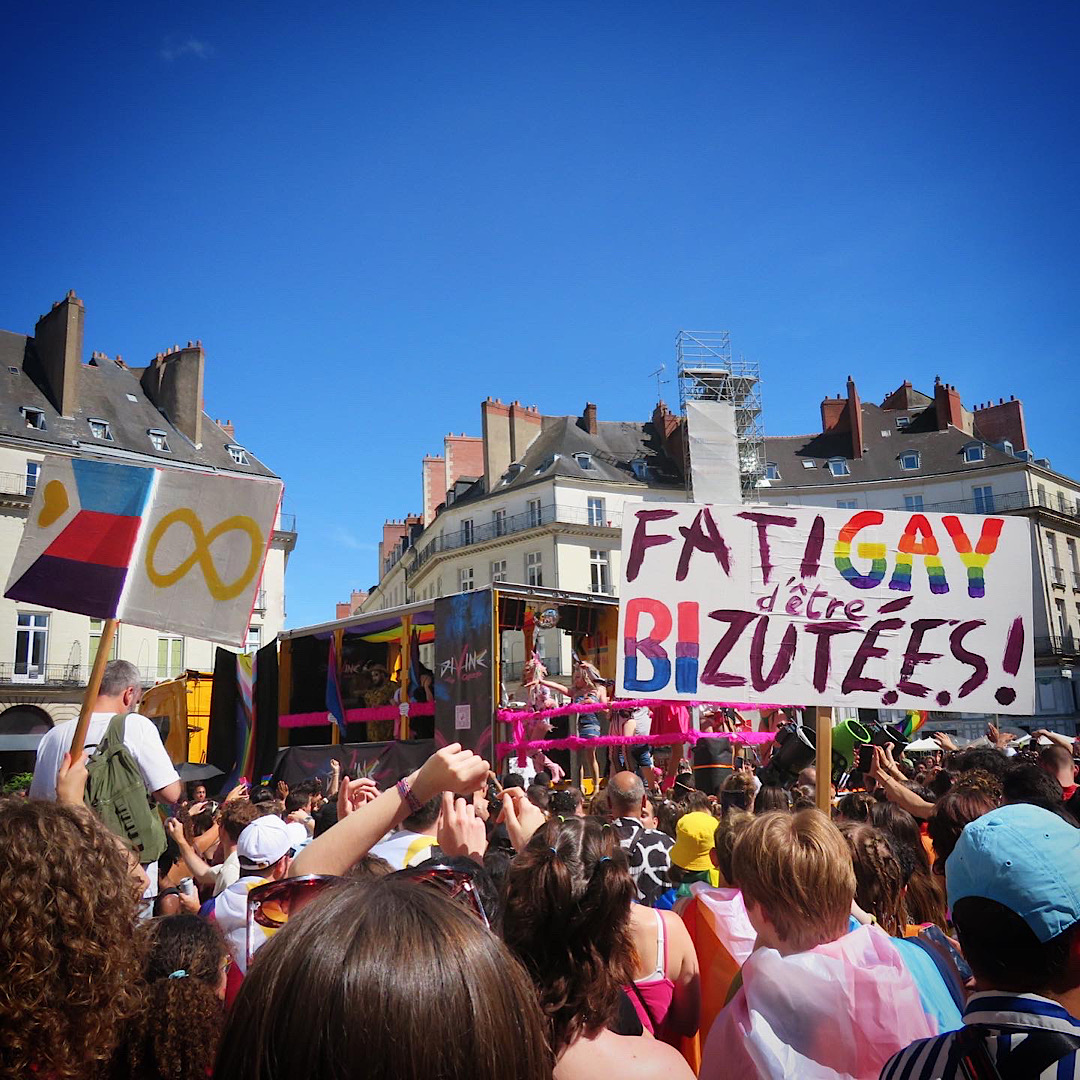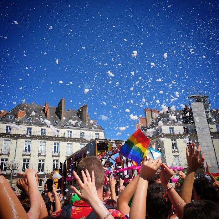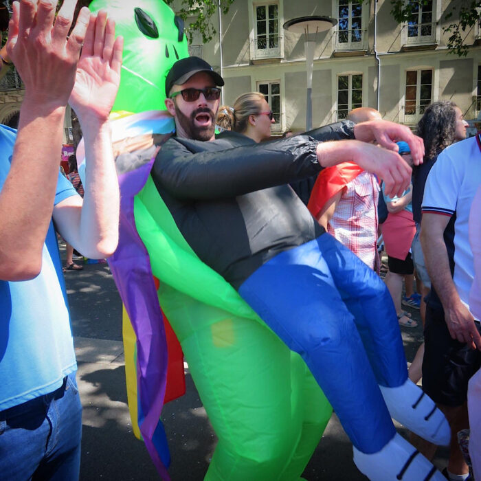 C’était une très belle Marche de Fiertés nantaise, un peu à l’image de l’année dernière, avec des tas de gens de tous les âges, les styles et les revendications. Des drapeaux dans tous les sens, de la musique, des pancartes et des invertis de toutes les sortes. Hu hu hu.