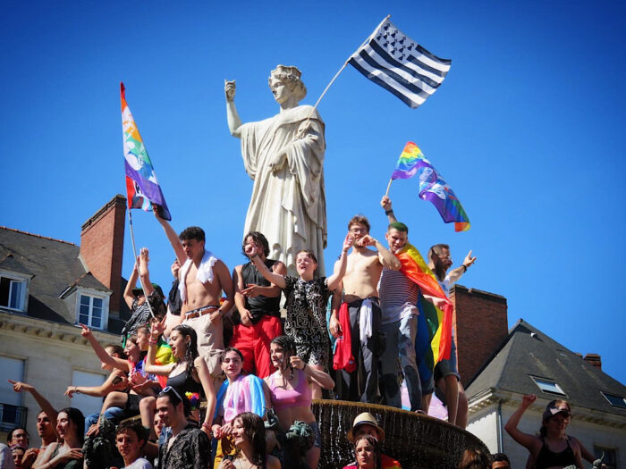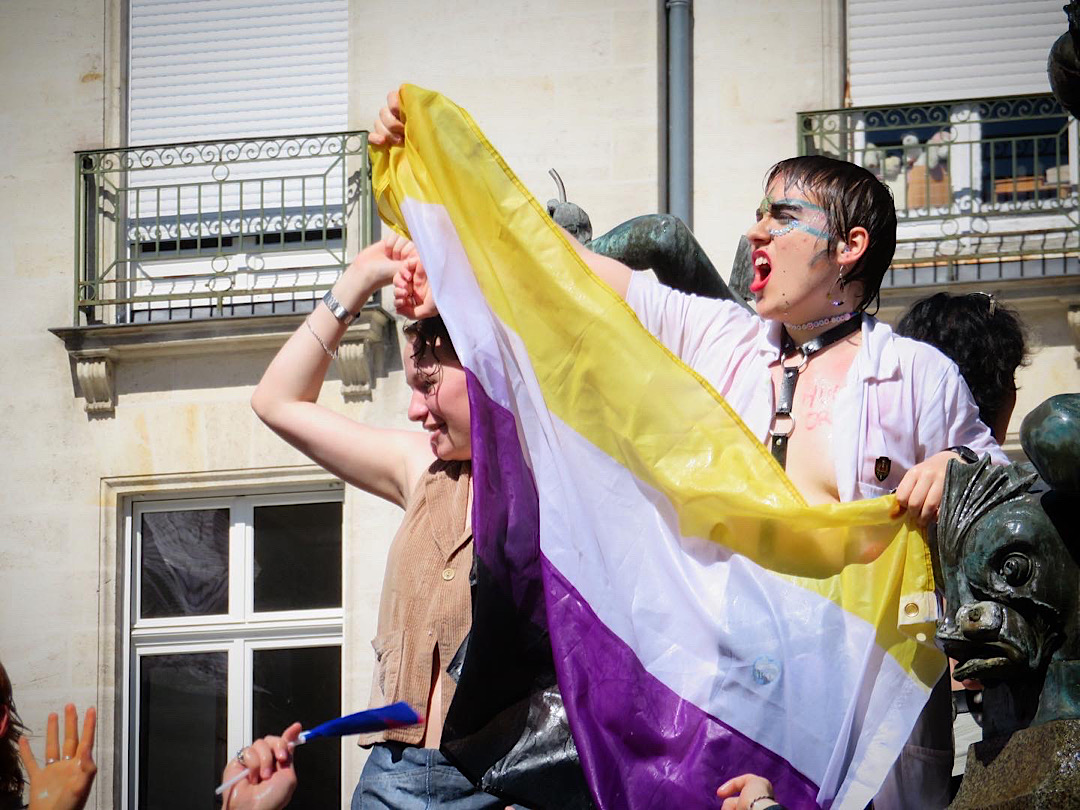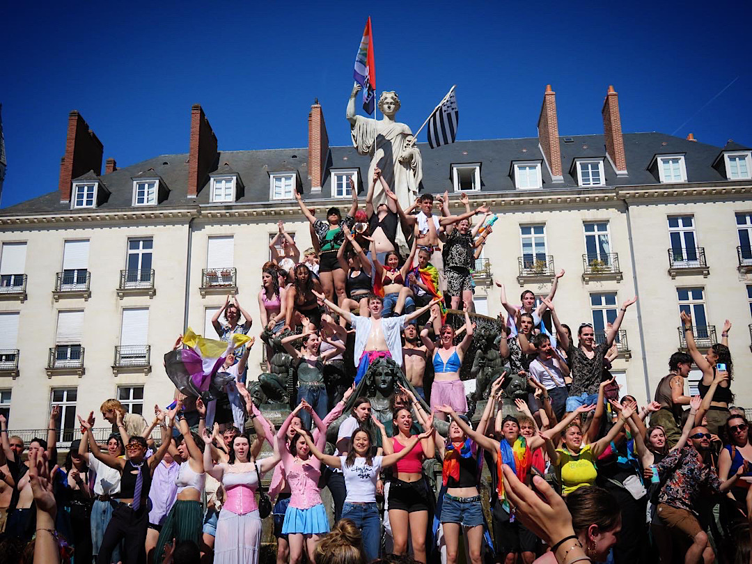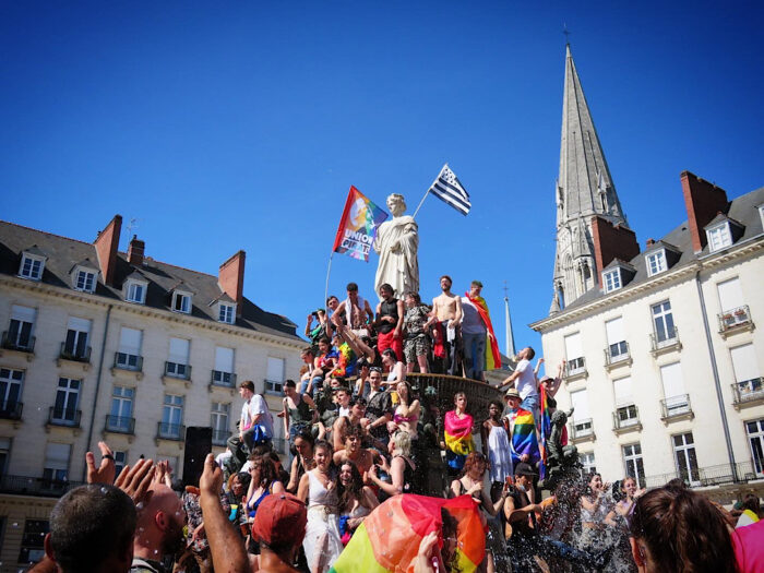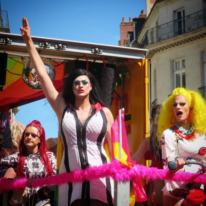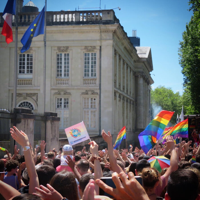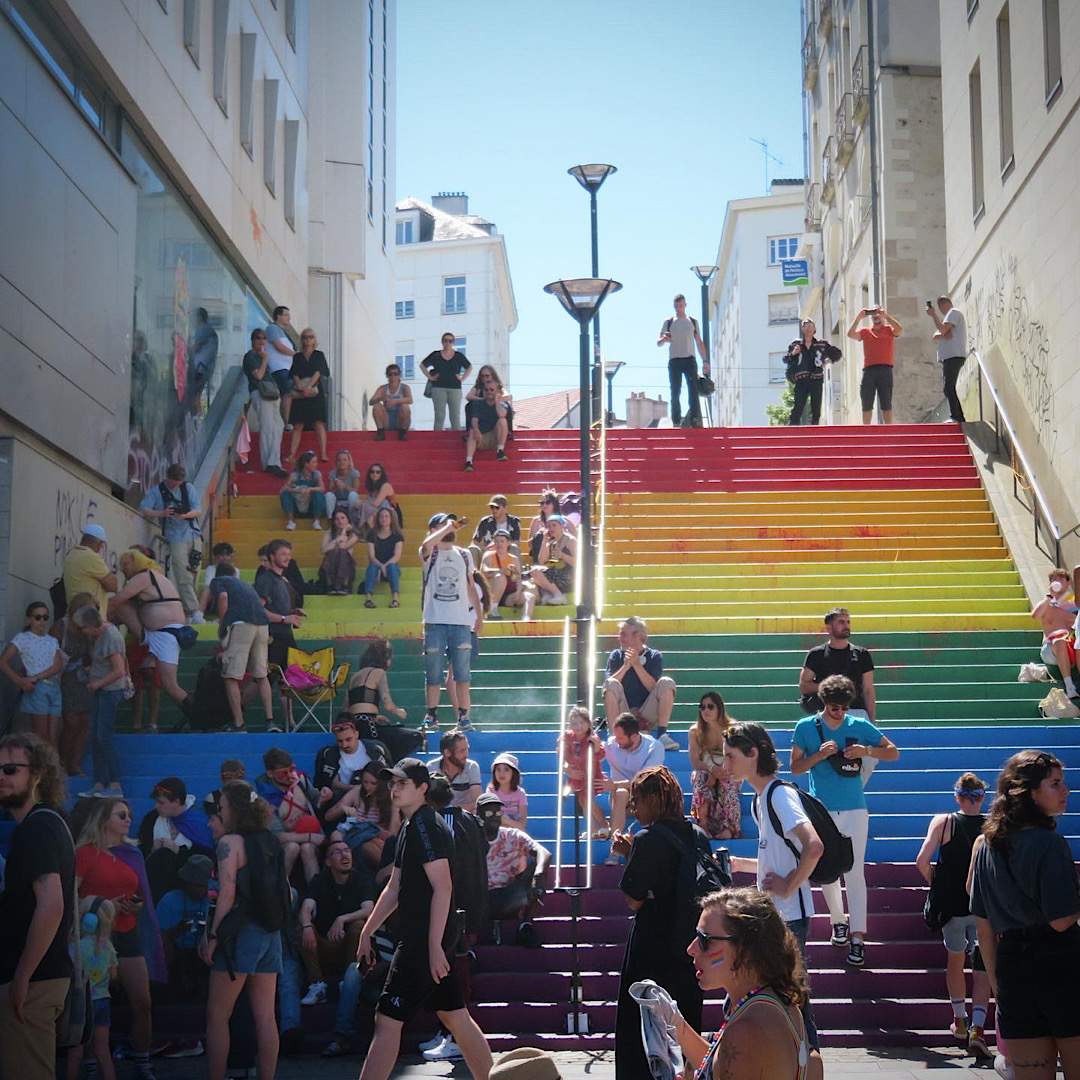 C’était une très belle Marche de Fiertés nantaise, un peu à l’image de l’année dernière, avec des tas de gens de tous les âges, les styles et les revendications. Des drapeaux dans tous les sens, de la musique, des pancartes et des invertis de toutes les sortes. Hu hu hu.