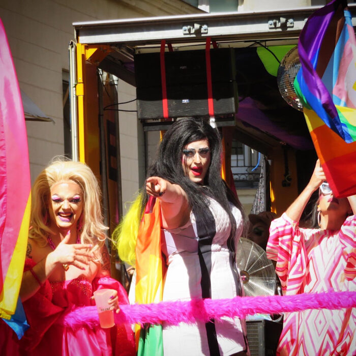 Et je ne sais pas si vous le remarquez mais comme l’an passé, la population là est remarquablement féminine (en expression en tout cas, hu hu hu), ce qui change et est super cool. Il y a aussi cette Drag Queen dont je ne connais malheureusement pas le nom, mais qui n’a pas arrêté de proposer de magnifiques postures en mode « La liberté guidant le peuple. » Comment résister.