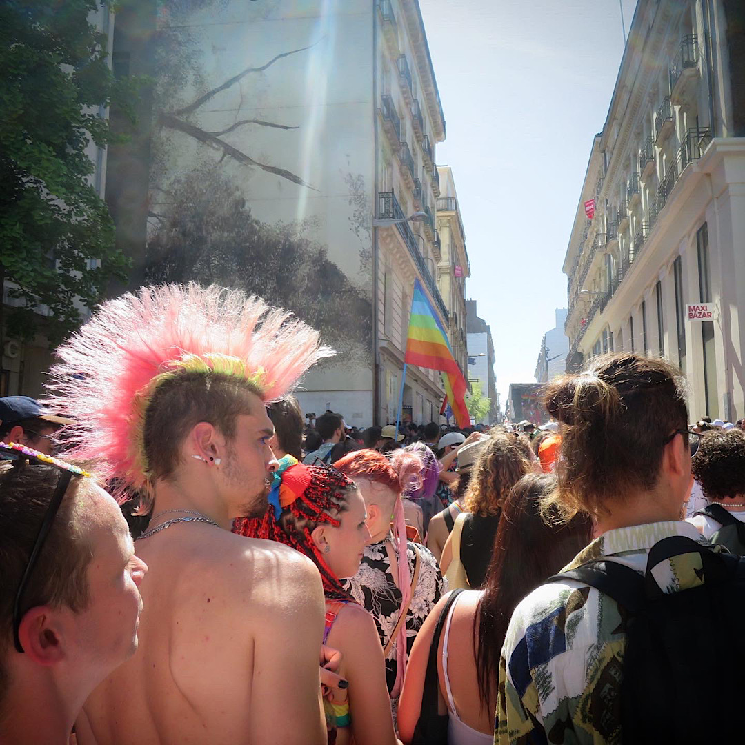 Bon sinon le petit bémol c’est tout de même que le côté ultra festif met carrément au second plan les revendications, en tout cas dans les cortèges (sauf avec les pancartes). Il y a aussi l’absence de la minute de silence aux victimes du VIH qui me manque beaucoup. Mais je ne bouderai pas mon plaisir, car c’était un chouette moment.