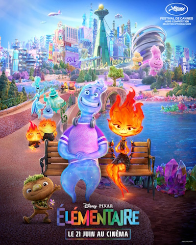 Mais là, on n’est pas dans une bonne série, et c’est une sacrée (triste) inflexion dans la qualité des long-métrages de ces dernières années. Pourtant cela reste très beau, et la thématique des éléments permet de se la jouer sur la transparence et l’effet déformant de l’eau, sur la texture des flemmes ou celle du vent de la vapeur d’eau. Mais la direction artistique globale n’a rien d’original, ça m’a fait penser à Zootopia pour les couleurs criardes (ou même Luca), et cette réinvention d’une ville futuriste adaptée aux éléments avec même des vibes d’Avalonia (des productions Disney donc).