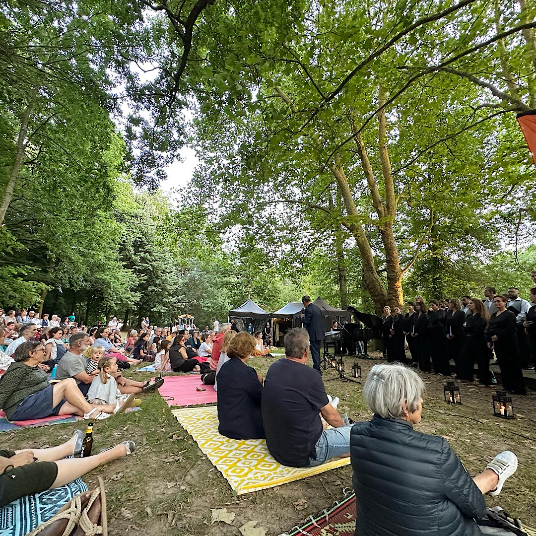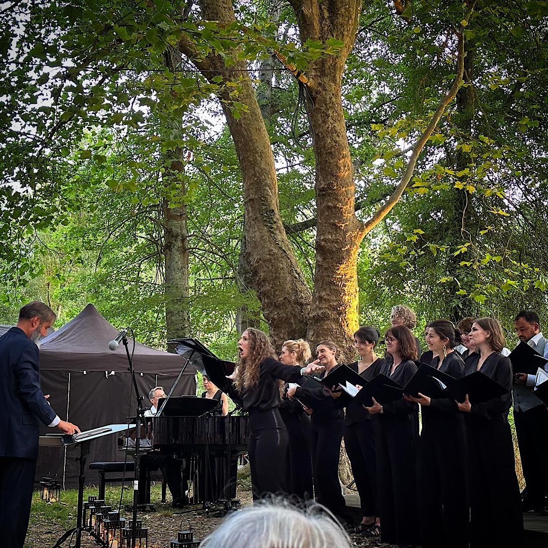 Samedi soir, j’avais vu qu’un festival gratuit nantais, Aux heures d’été, proposait un récital du Chœur de l’Opéra d’Angers et de Nantes en plein air. C’était sur un espace du parc de la Chézine, juste à côté de celui de Procé, et c’était assez génial. Il y avait une centaine de personnes je pense, assises sur l’herbe, et les chanteurs et chanteuses étaient à quelques mètres seulement de nous. Sous les frondaisons, le son était pas mal du tout, et on ressentait vraiment une belle puissance vocale.