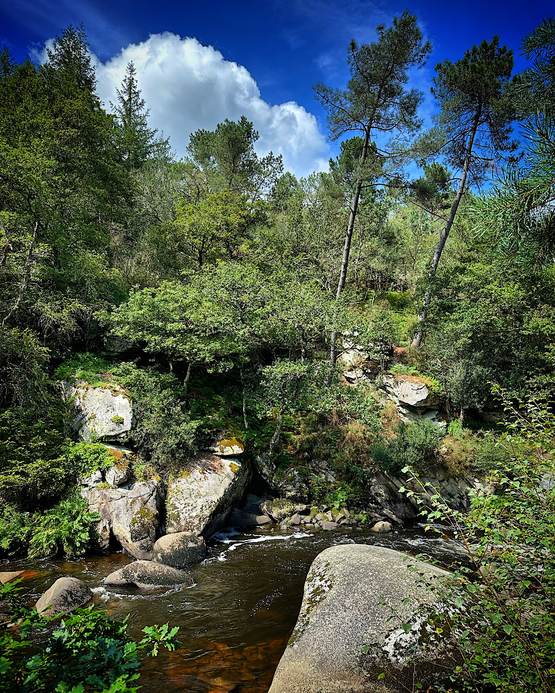 Fin des vacances, mais au moins avec un temps un peu plus clément, on a bien pu se balader et notamment faire une énième fois la petite promenade dans les roches du Diable avec les copains. C’est incroyable et toujours aussi beau, et sympa à toutes les saisons en fait. Mais là avec cette forte lumière estivale, et la verdure luxuriante (les pluies ayant au moins servi à ça