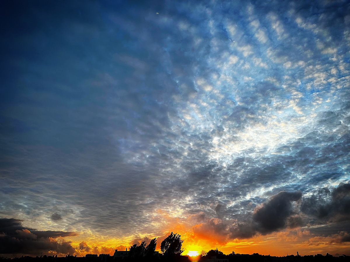 Un ciel très nuageux et bien dégagé à l’horizon, ça donne souvent de chouettes couchers de soleil, c’était le cas ce soir.