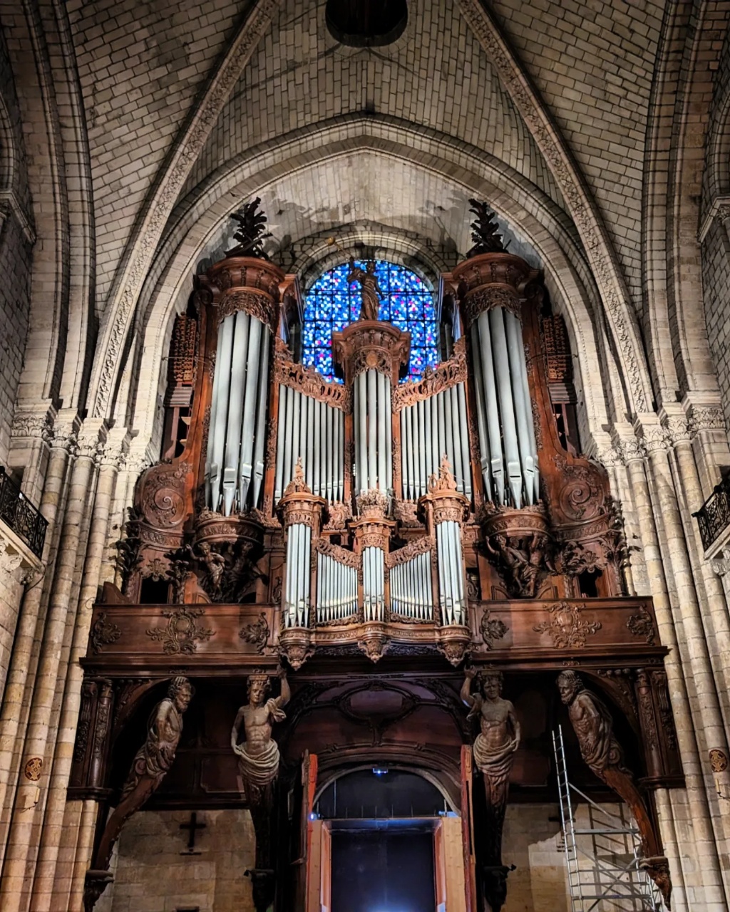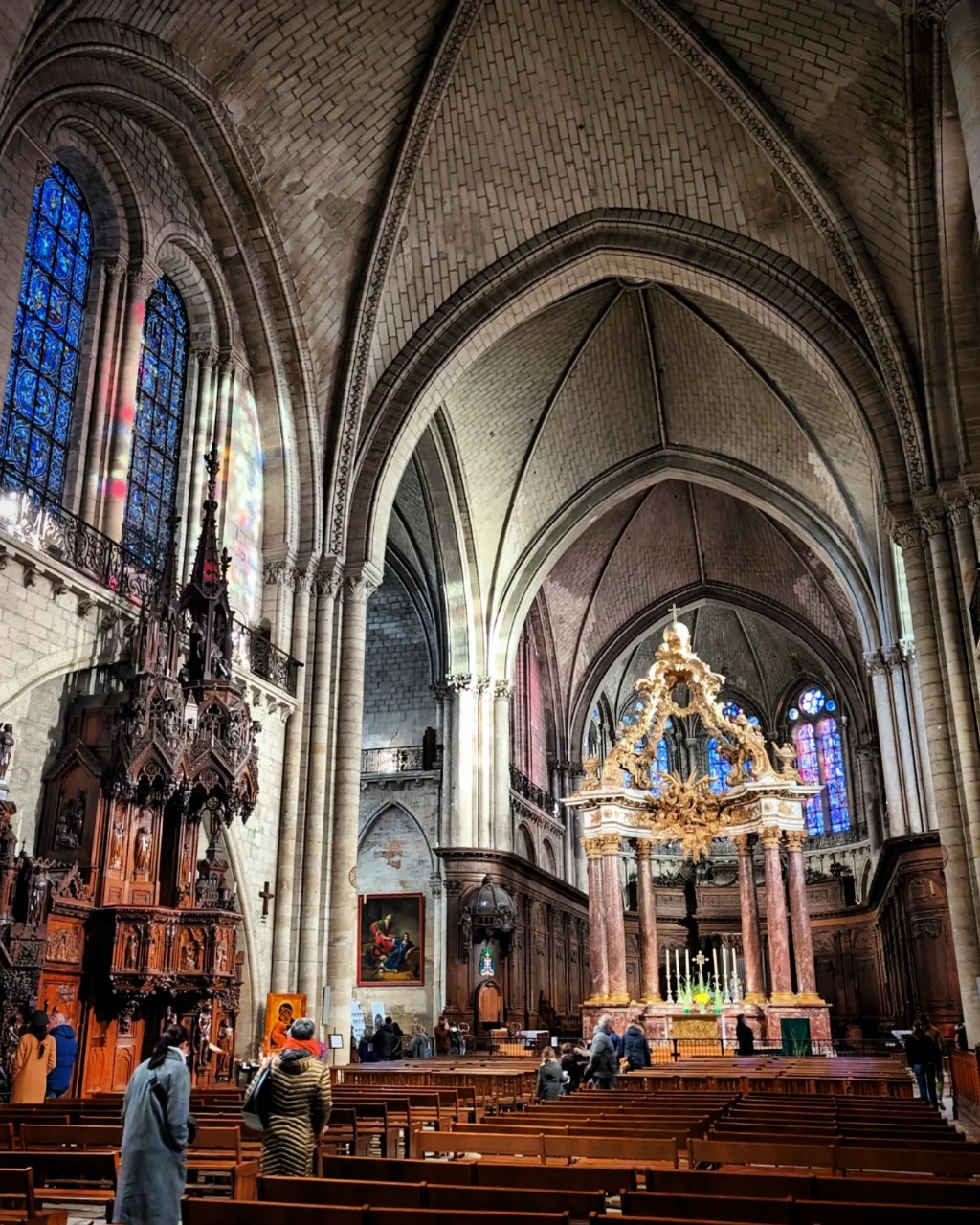 La cathédrale ne m’a pas non plus décroché la mâchoire, mais elle est assez originale. On est dans un style sobre assez intermédiaire entre Roman et Gothique Angevin, avec un plan très très classique et assez modeste en taille même si la largeur totale de la nef est assez importante (mais pas d’allée ou de chapelles latérales). La hauteur de la voûte n’est vraiment pas dingue, et on n’a pas l’impression classique d’être dans une de ces grandes cathédrales gothiques très lumineuses.