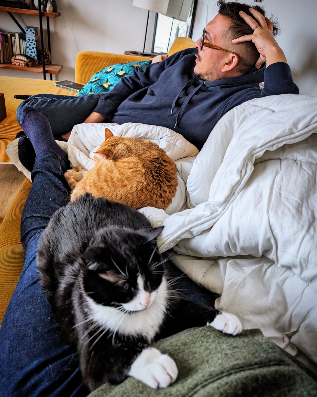 Mais heureusement un canapé avec le mari, la couette, les chatounettes et des trucs à la télé, c’est finalement pas mal du tout. ^^