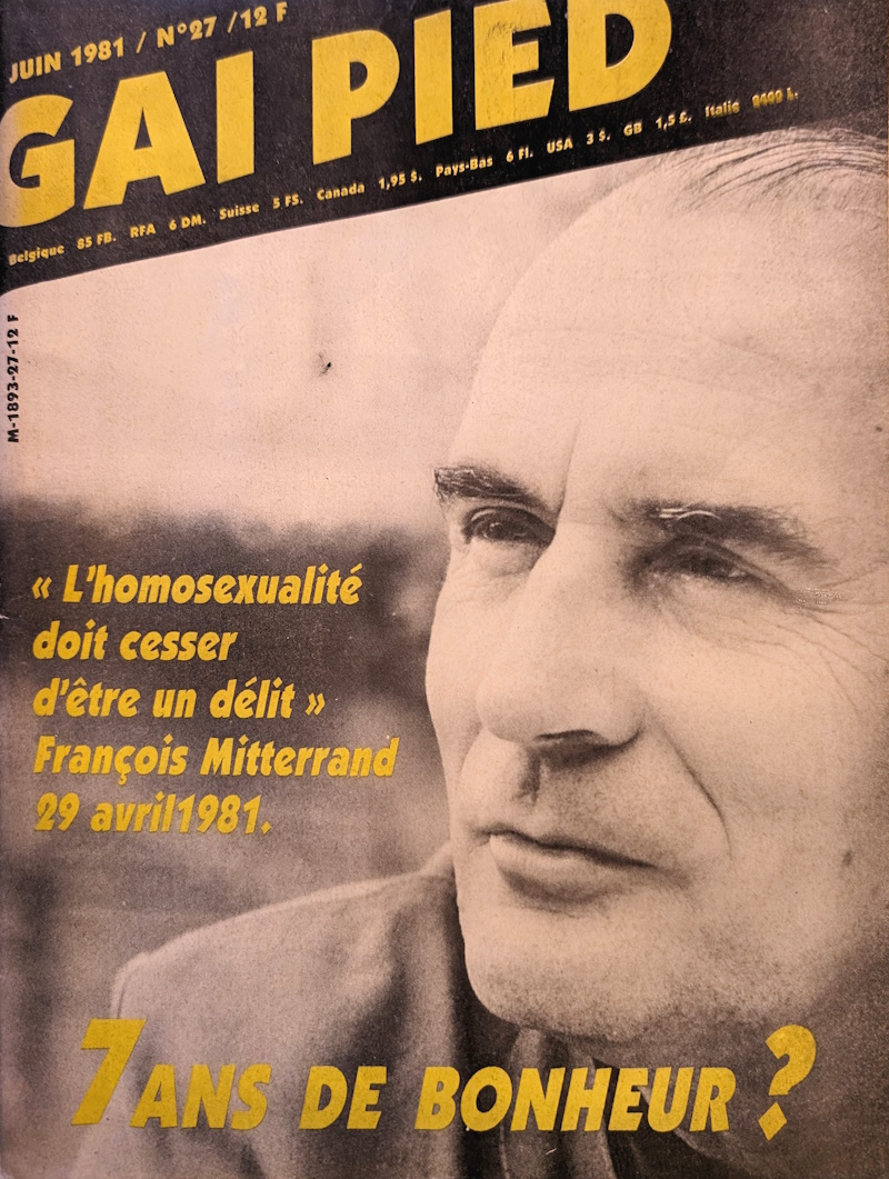 Je possède 3 numéros emblématiques du mensuel Le Gai Pied (les numéros 2, 27 et 42), et il se trouve que le N°42 de septembre 1982 évoque cette nouvelle loi.
