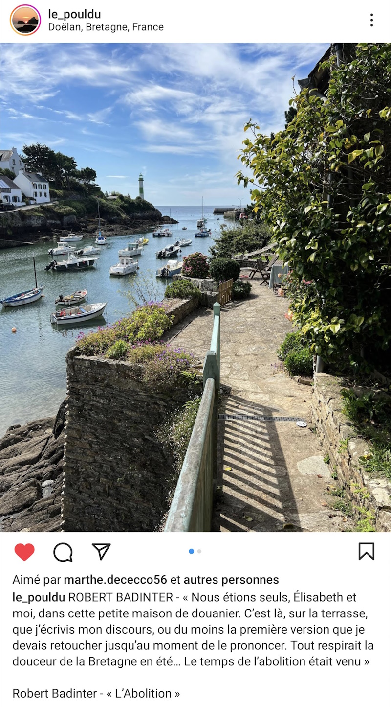 ), mais voilà la petite maison où Robert Badinter a écrit son discours d’abolition de la peine de mort. Et c’est à Doëlan, à Clohars-Carnoët donc, et on est tous très fier de ce petit fait historique local. Hu hu hu.