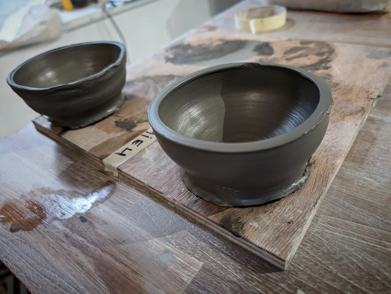 Bon j’ai réussi à faire deux bols très imparfaits, mais c’était une première fois. ^^ Je suis loin de concourir à mon émission fétiche. Hu hu hu.