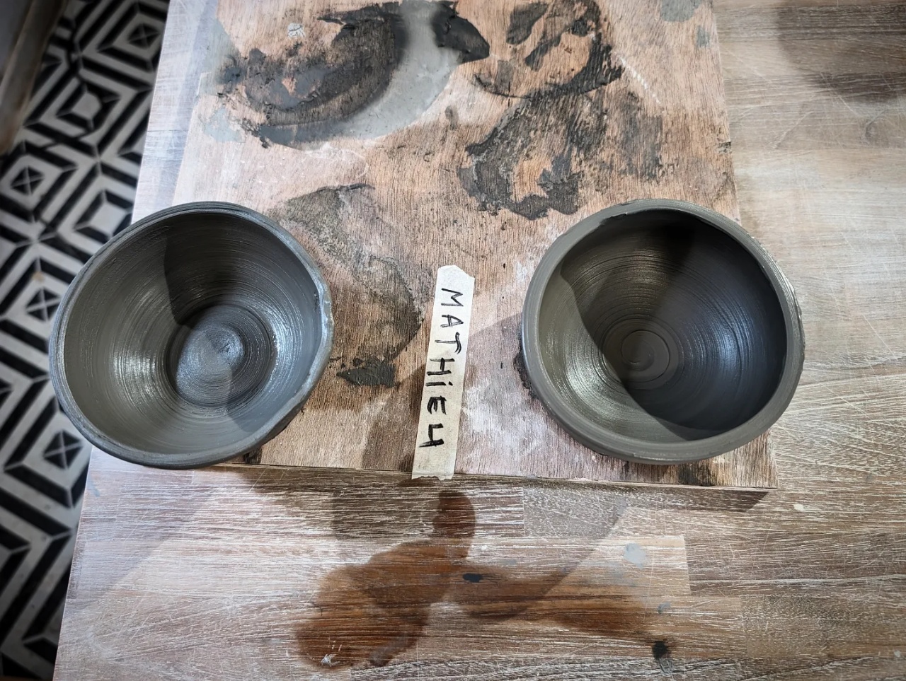 Bon j’ai réussi à faire deux bols très imparfaits, mais c’était une première fois. ^^ Je suis loin de concourir à mon émission fétiche. Hu hu hu.