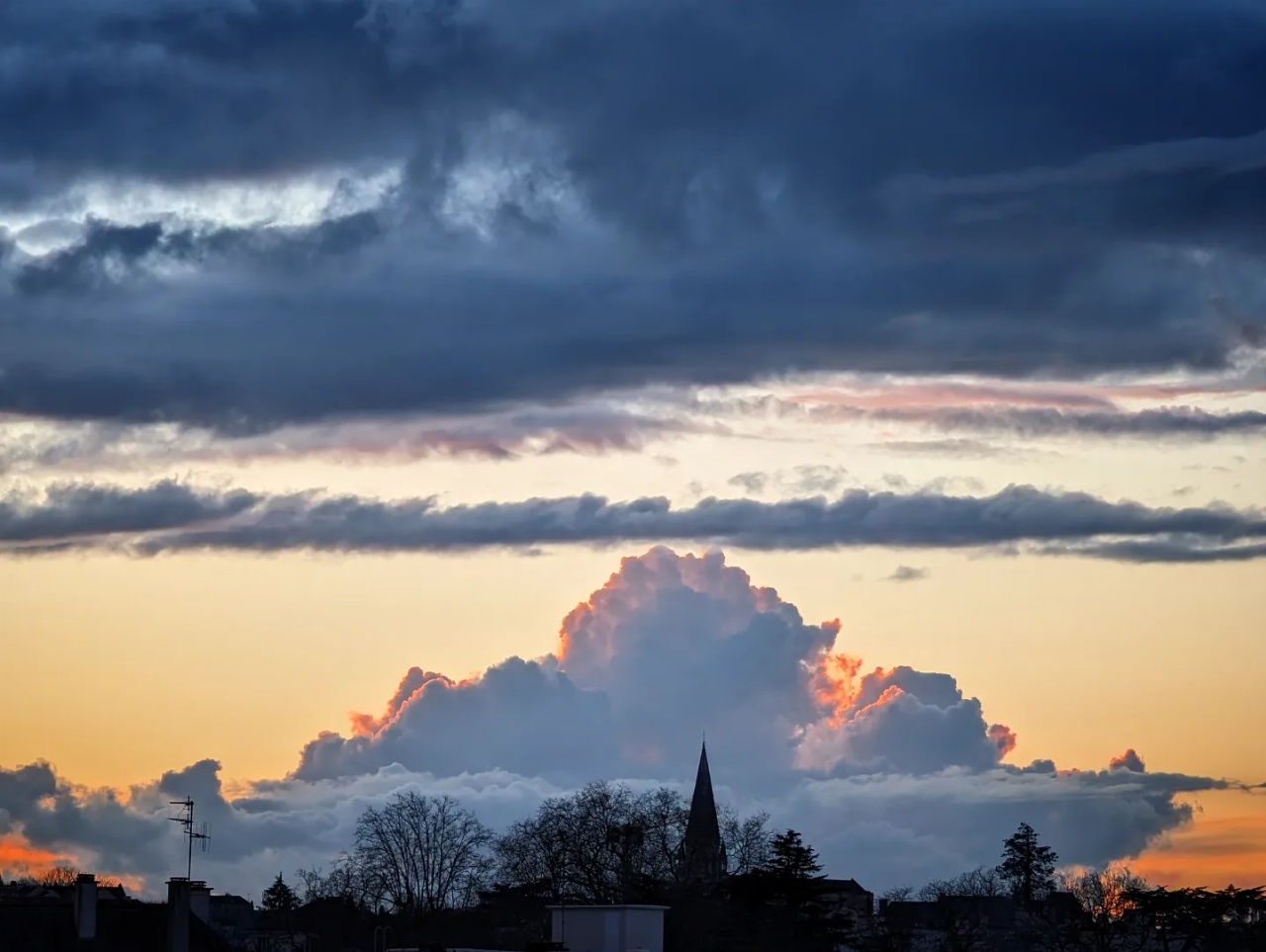 Catégories Posted inin Brèves de Blogage Nuages et couleurs2 mars 20242 commentaires C’est juste que les nuages étaient vachement jolis ce soir au coucher du soleil. Je plussoie