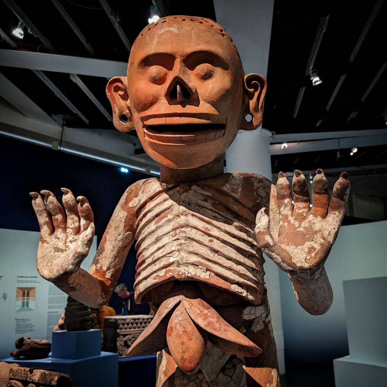 Sont exposées des pièces remarquables en tant que telles, soit des éléments de décor ou des statues sacrées, mais aussi énormément d’offrandes votives qui ont fait partie de sacrifices ou de célébrations cultuelles spécifiques. Il y a notamment cette sorte d’écorché hyper impressionnant et de très grande taille.