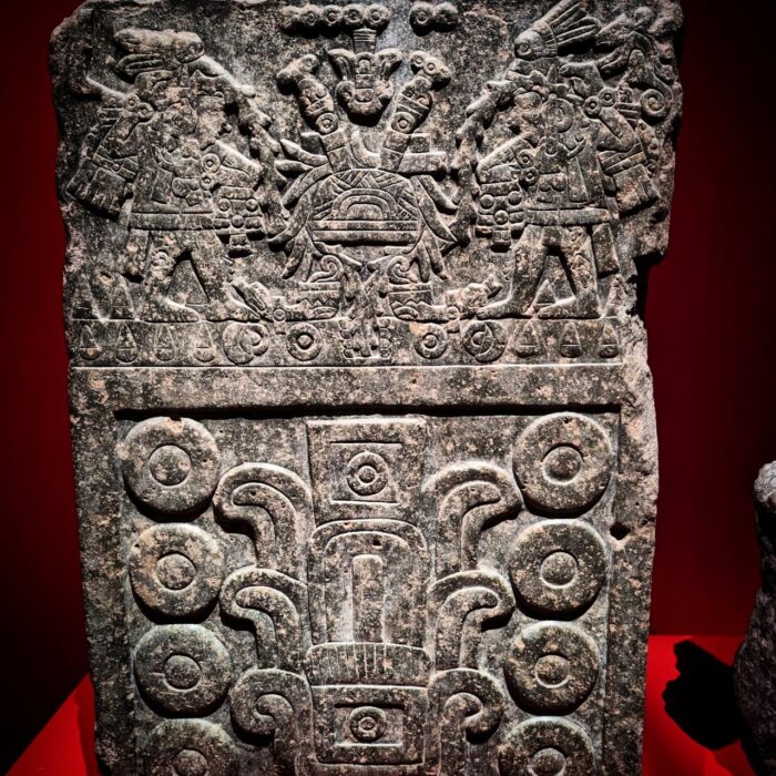 L’exposition se présente de manière très didactique, et avec énormément de pièces pour illustrer ses propos. Et vraiment on en prend plein la vue avec des pièces très impressionnantes, autant par la taille, la valeur artistique ou par l’impression dégagée. Tout le début permet de comprendre ce qu’était cette ville au global et son importance (70 000 habitants) dans un Empire qui contrôlait une région immense3. Mais surtout on plonge rapidement dans le vif du sujet, et ce temple immense et singulièrement bicéphale avec ses deux déités tutélaires en un curieux Yin et Yang. On a l’une des têtes consacrées à Huitzilopochtli, divinité liée à la création mythique de la ville, associée au soleil, au feu et au jour, et l’autre tête à Tlaloc, dieu de la pluie, associé plutôt à l’ombre, à la couleur bleue, à la lune et à l’eau évidemment.