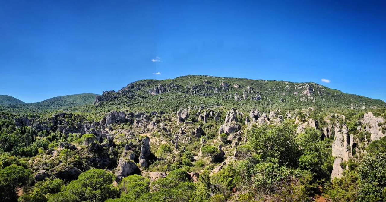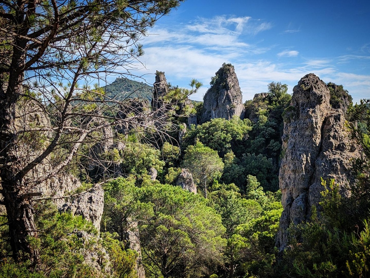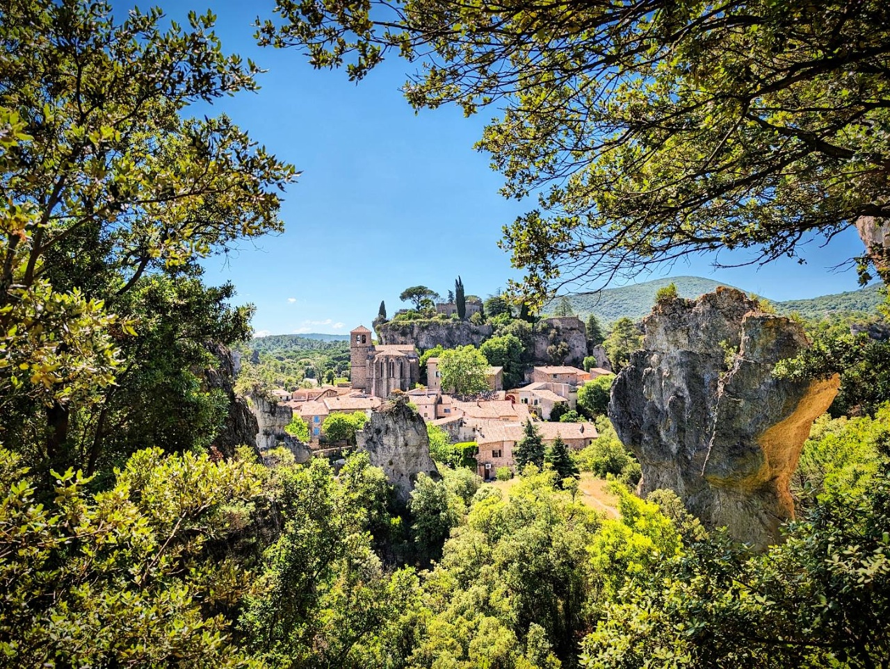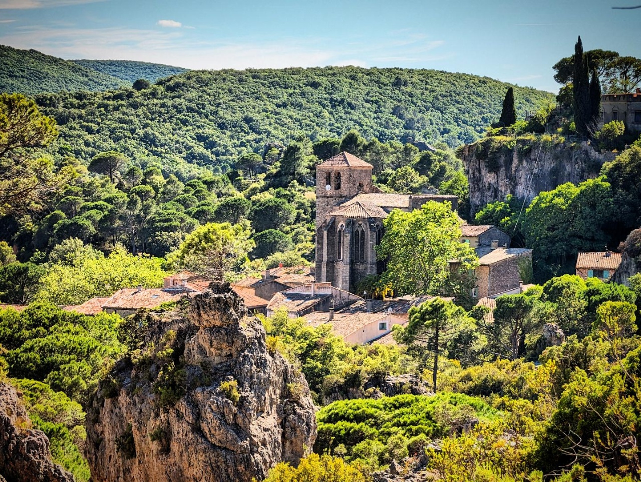 On a une vue extraordinaire du petit village de Mourèze qui est également perché sur un éperon au bord du cirque, et les vues panoramiques du coin sont somptueuses. Pour y retourner presque 15 ans plus tard, l’effet est toujours aussi fou.