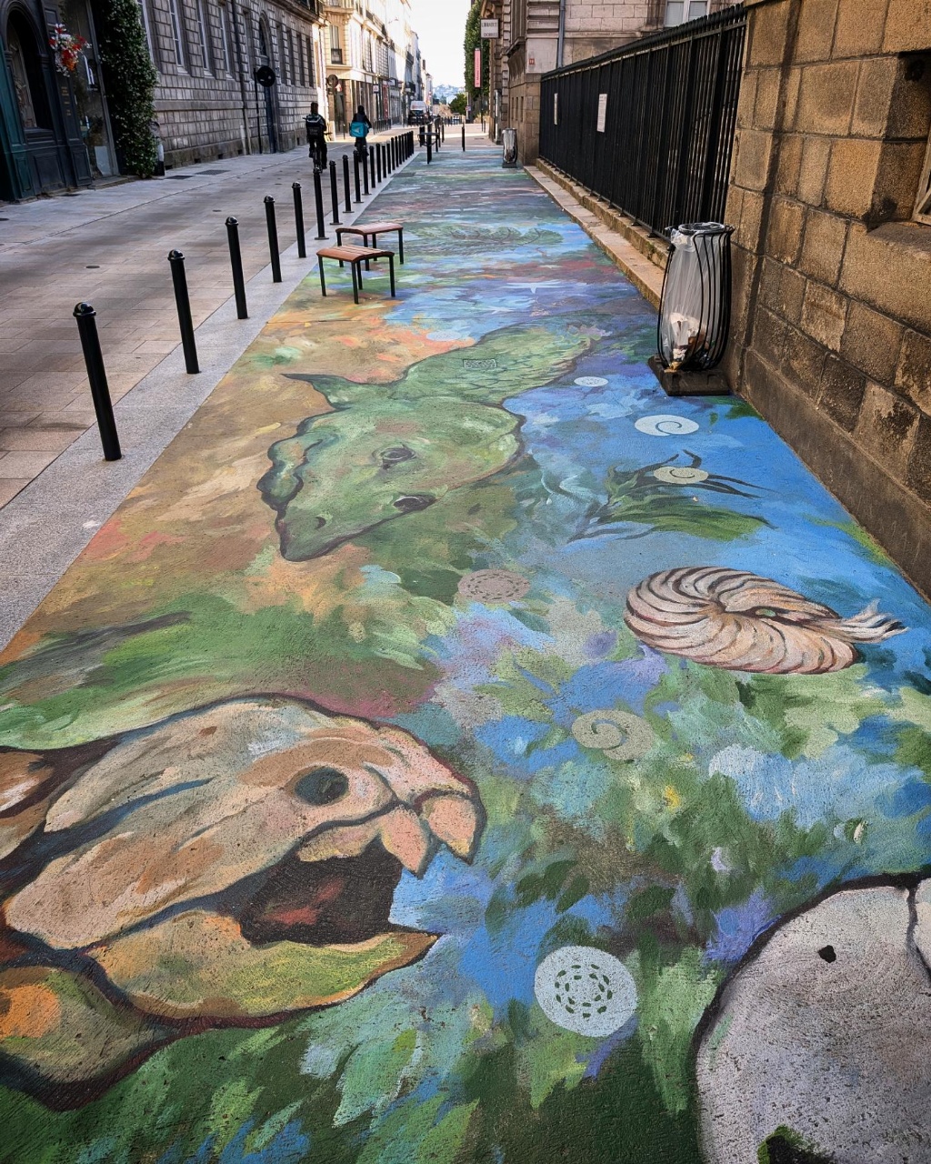 Cela fait quelques semaines déjà que l’artiste Makiko Furuichi a terminé son œuvre : Dans les pas… de l’évolution du vivant. Je l’ai vu jour après jour peindre à même le sol sans dessin préparatoire cette fresque (sur béton) fascinante de beauté et de créativité. Le truc est carrément interminable comme vous pouvez le voir dans cette galerie qui la présente de bout en bout. Des animaux, des végétaux, des écosystèmes, et des évocations du muséum à travers des espèces présentes, menacées ou fossilisées…