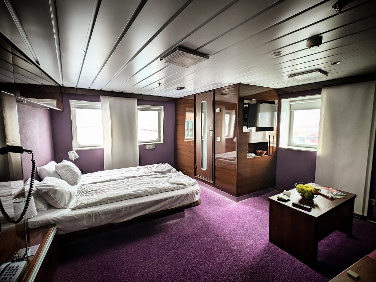 Et donc pour vous montrer un peu ce qui se passe, j’ai numéroté nos étapes (en tout cas ce qui est prévu à l’instant t). L’étape 1, c’était tout bêtement de conduire de Nantes à Cherbourg pour y choper le premier ferry. Et là le chéri avait un peu pété un boulon sur le standing qu’il m’a justifié avec un « Mais c’est presque comme un voyage de noces !! », donc on voyage en cabine grand luxe et c’était, je l’avoue, très agréable pour 18 heures de traversée jusqu’à Rosslare en Irlande (c’est l’étape 2).